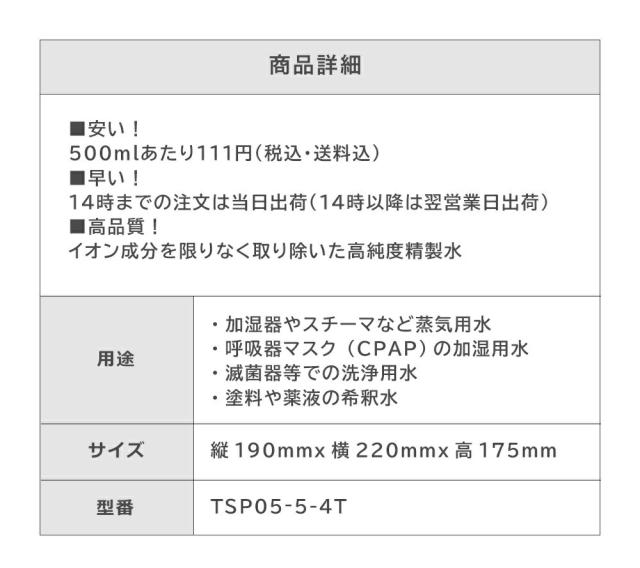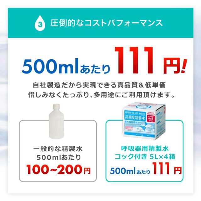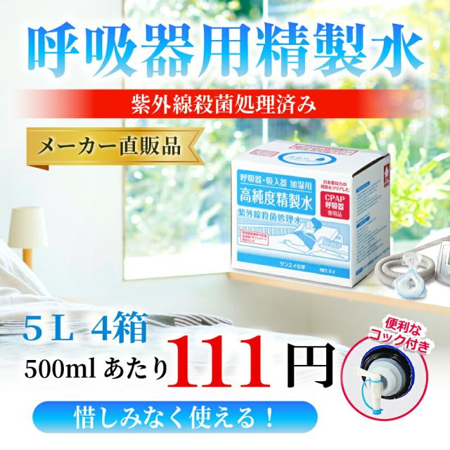 サンエイ化学 呼吸器用精製水 5L×4箱 コック付き の特長と主な用途