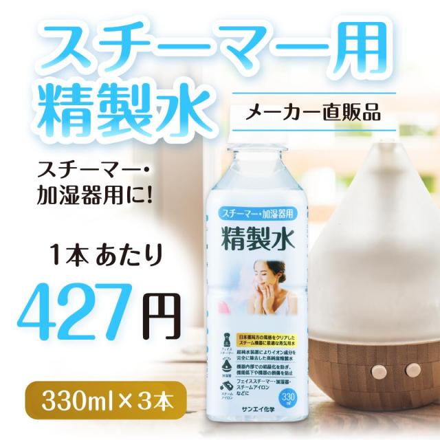 精製水 スチーマー用 330ml サンエイ化学 精製水 スチーマー用 精製水 330mL × 3本セット 加湿器やナノケア、フェイススチーマーなどに