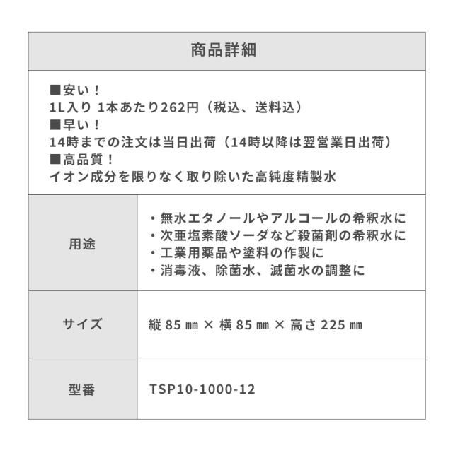 薬品希釈用精製水(せいせいすい) 1L×12本 |