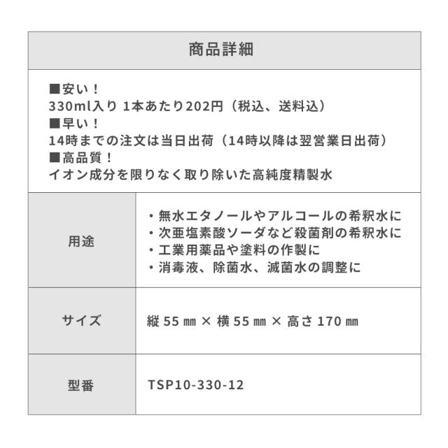 精製水 330ml サンエイ化学 精製水 薬品・アルコール 希釈用 精製水 330mL × 12本セット 除菌水や除菌スプレーの希釈水に