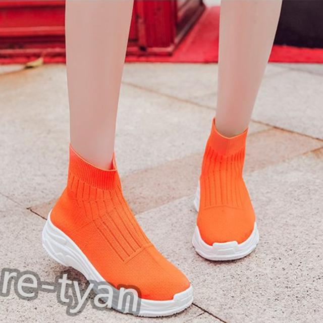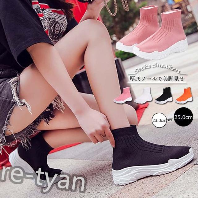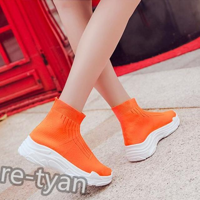 厚底 スニーカー ブーツ ソックススニーカー レディース ハイカット 美脚 軽量
