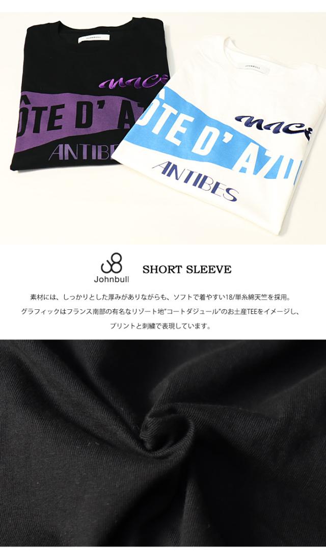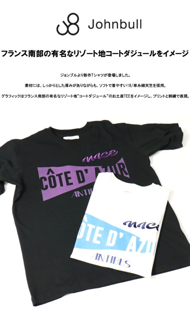 Johnbull ジョンブル プリント 刺繍 Tシャツ コートダジュール メンズ 半T 半袖Tシャツ 送料無料 25950
