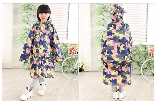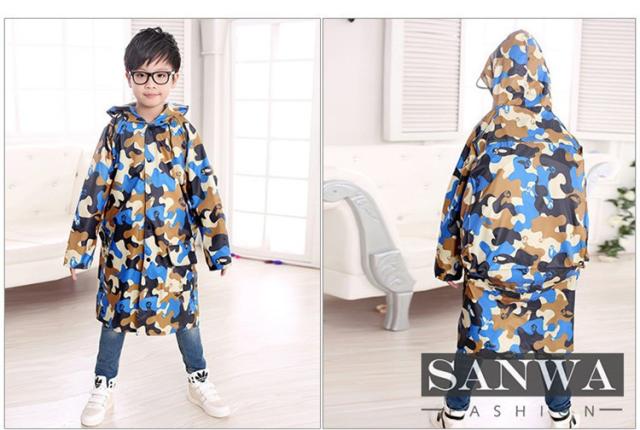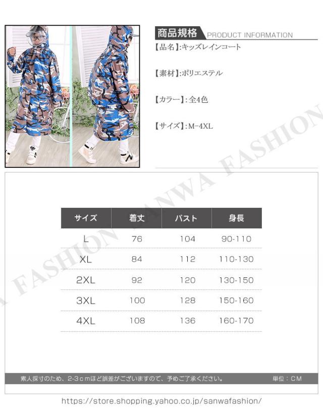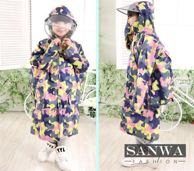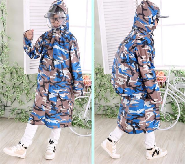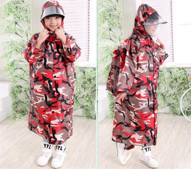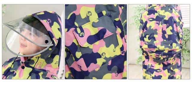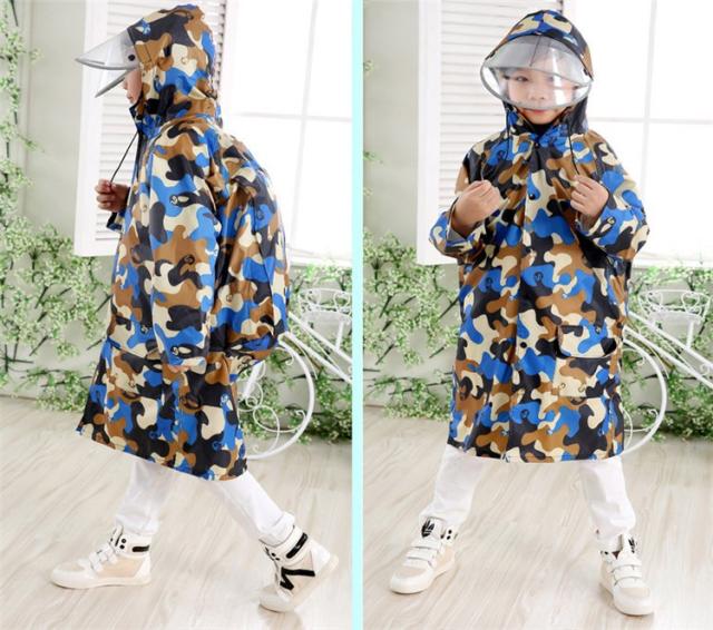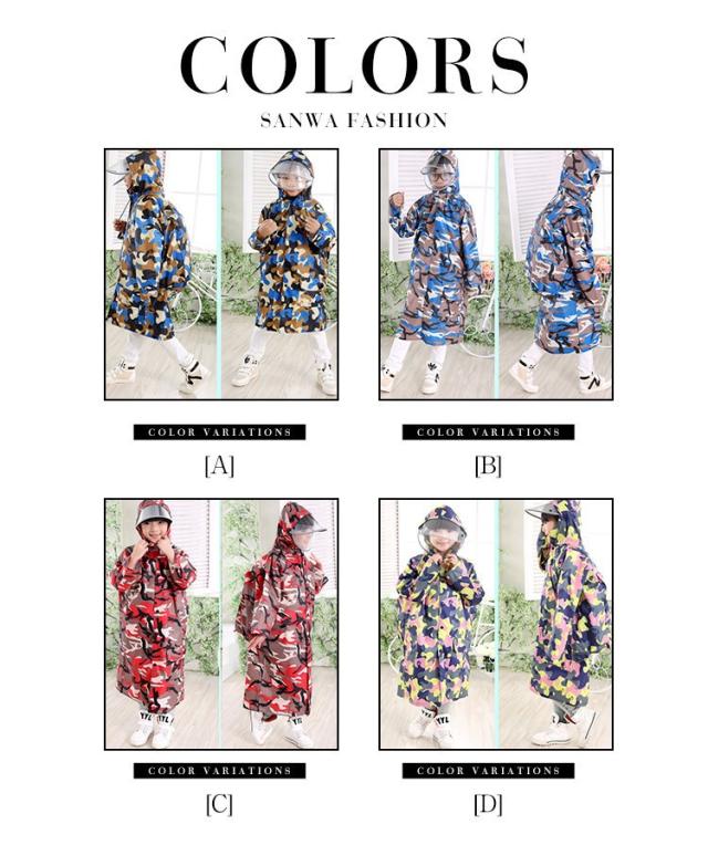 キッズレインコート レインウェア 小学生 男の子 女の子 キッズ フード付き ランドセル対応 透明ひさし付き 迷彩 雨具 カッパ 合羽 撥水加工 通園 通学