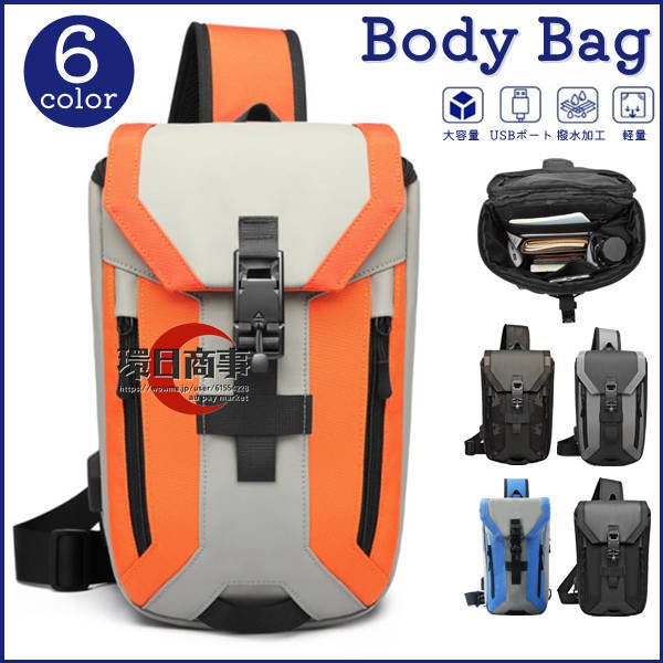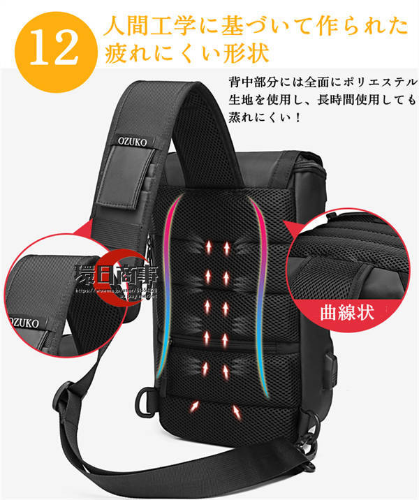 ボディバッグ 斜めがけバッグ ショルダーバッグ メンズ ウエストポーチUSBポート付き 多機能 撥水加工 大容量 保温 保冷 クッション 人間工学 定期入れ