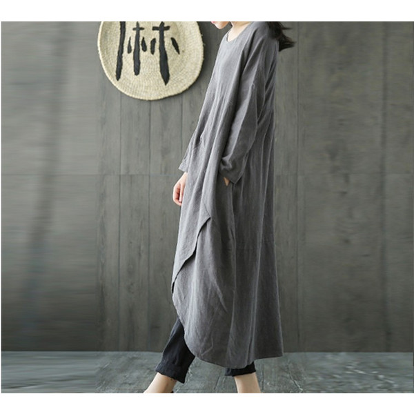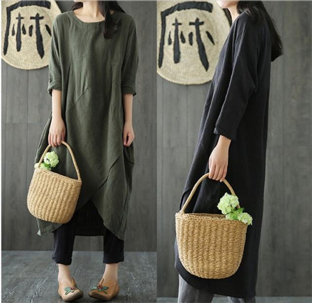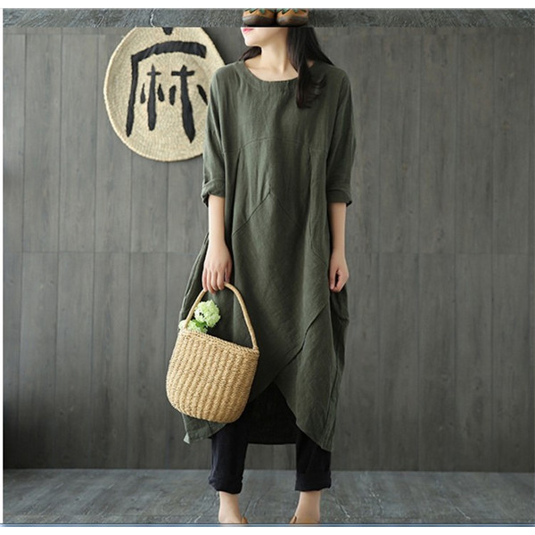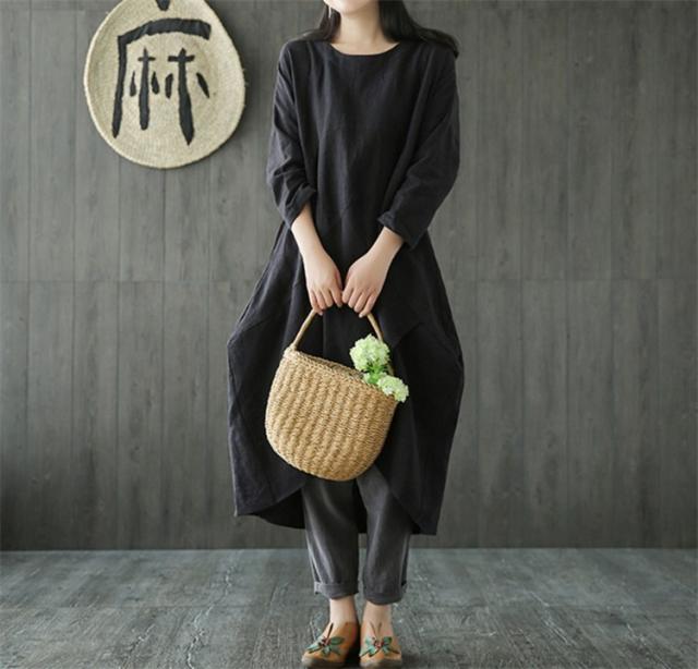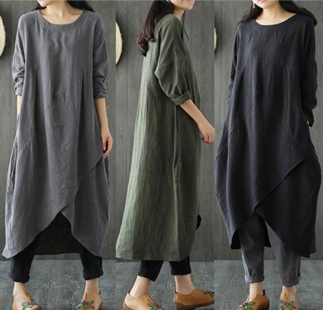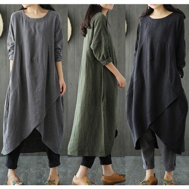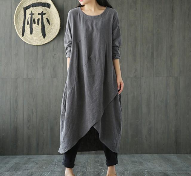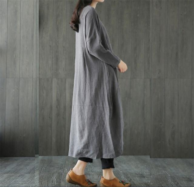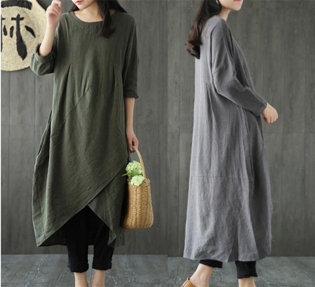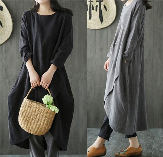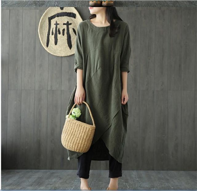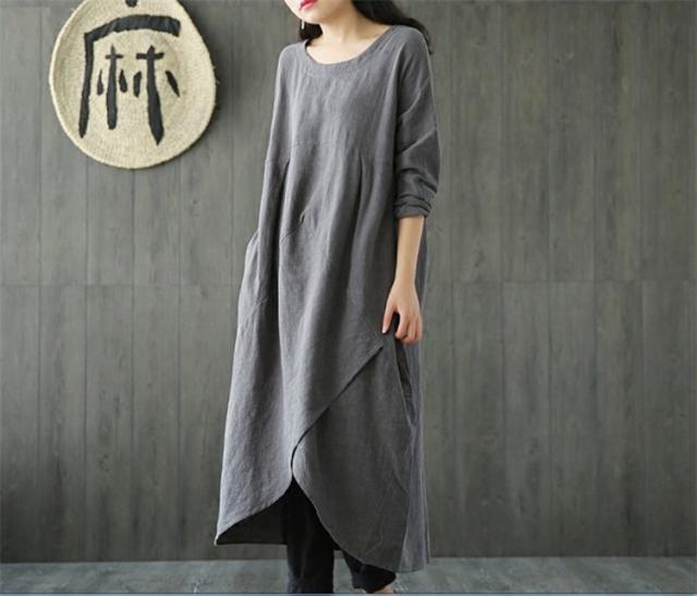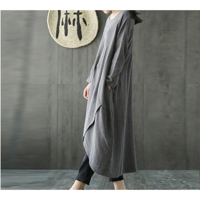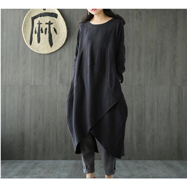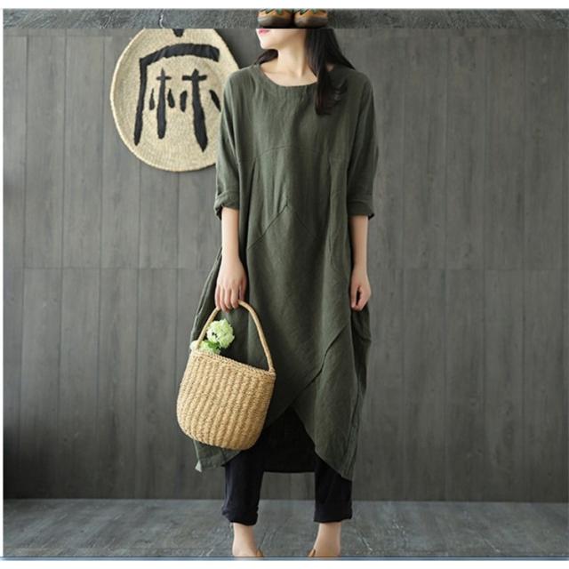 ワンピース レディース ミモレ丈ワンピース 薄手 綿麻 マキシワンピース アシンメトリー 18秋 ゆったり きれいめ