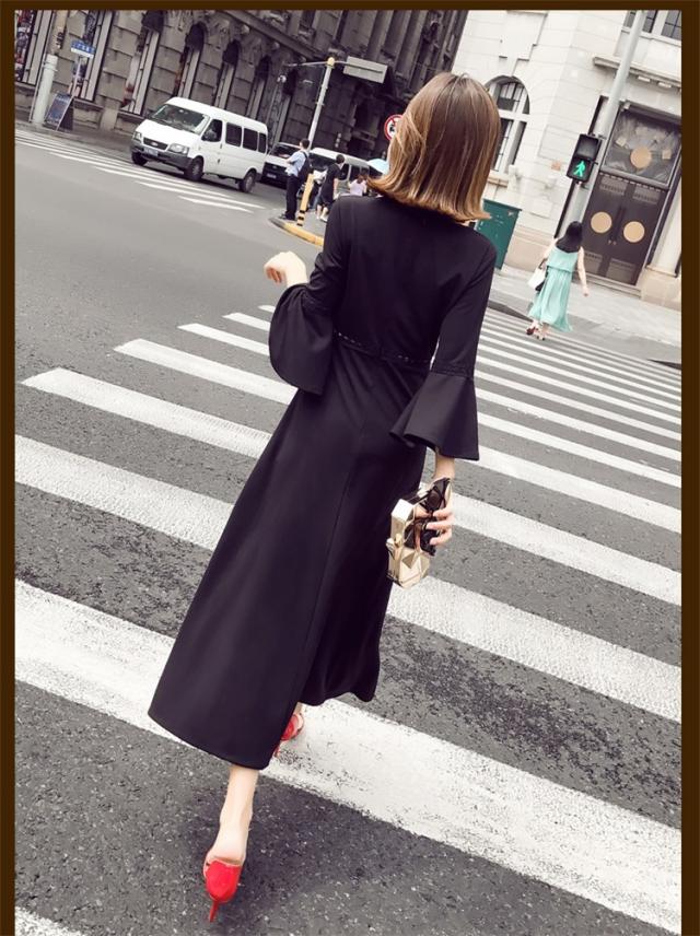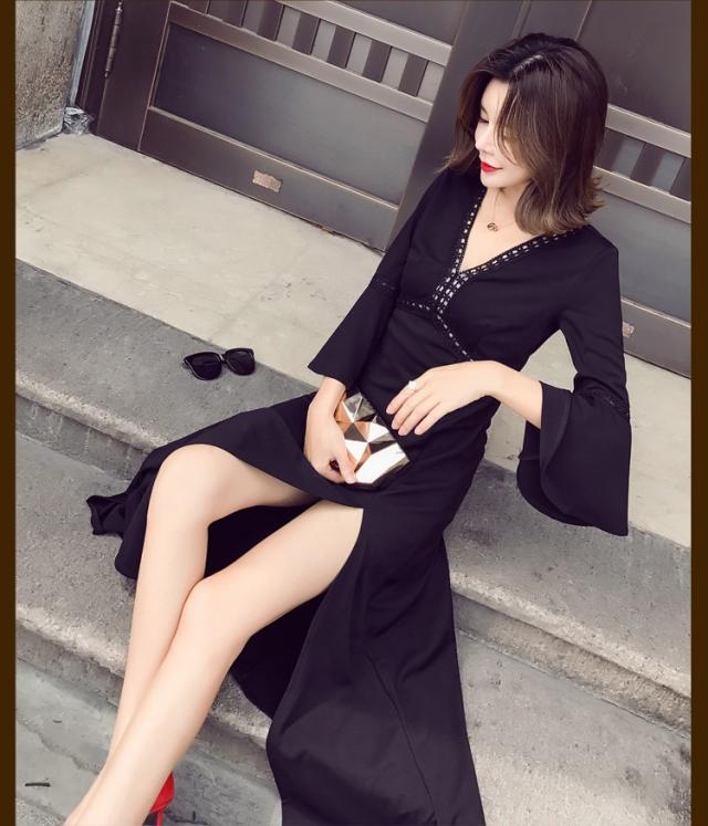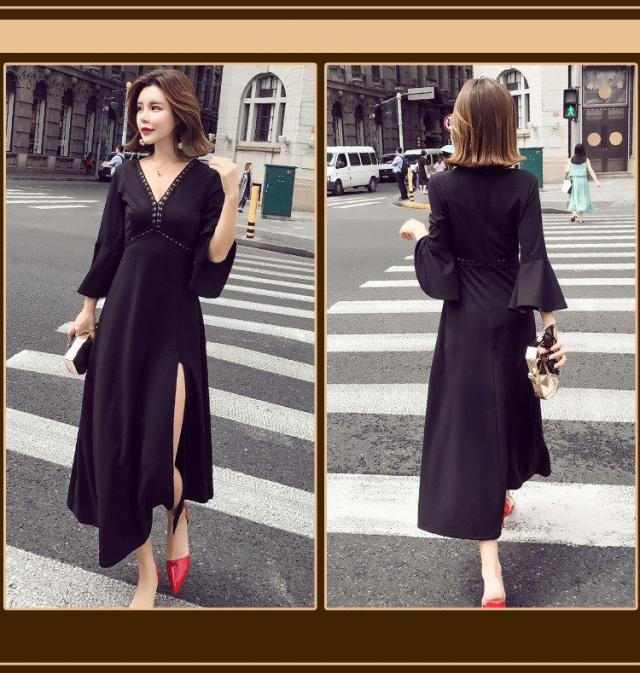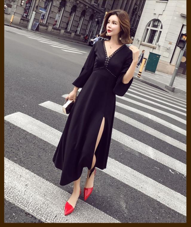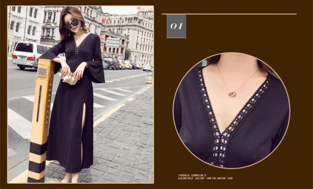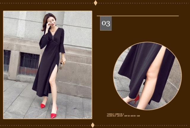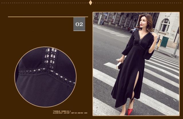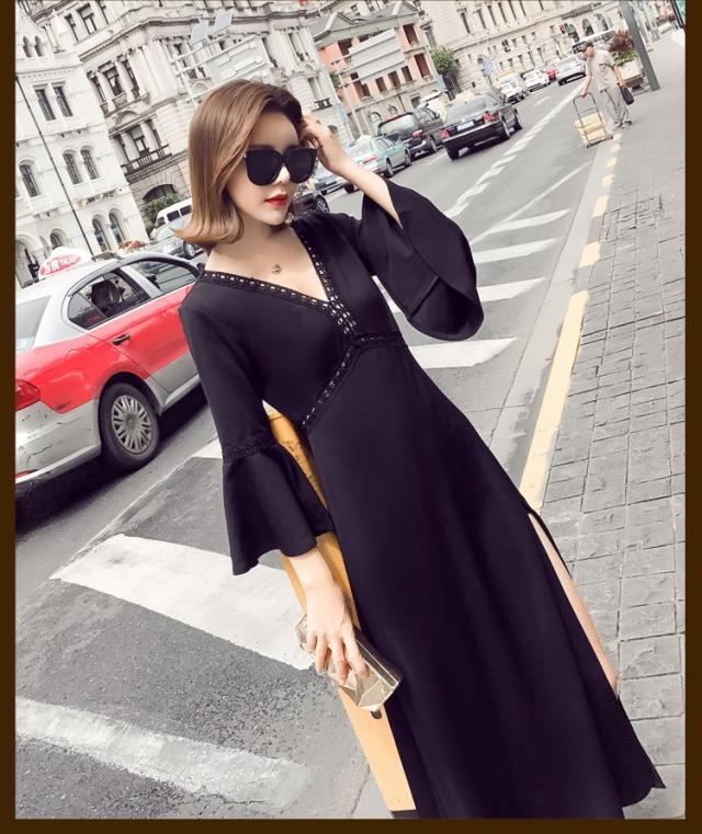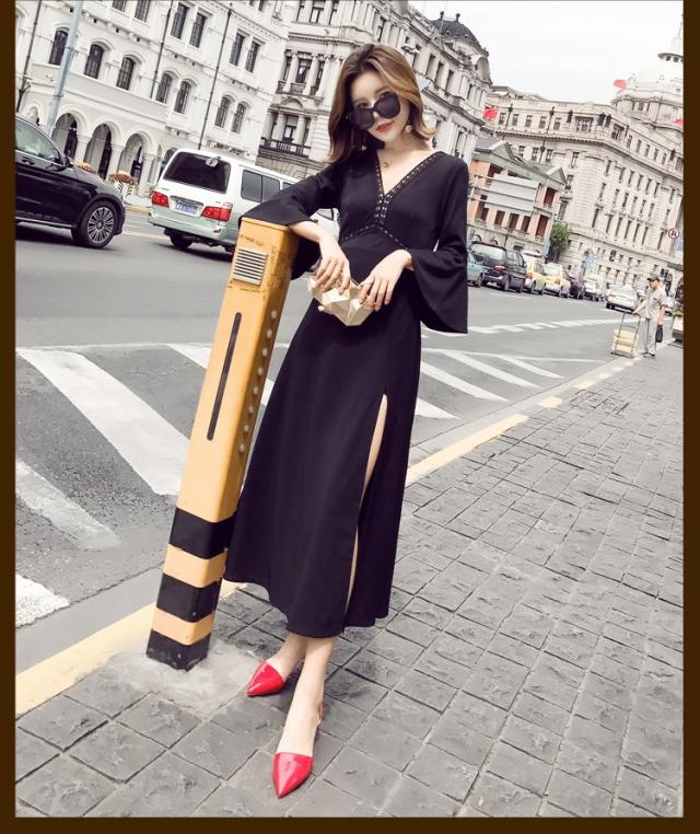 ワンピース レディース マキシワンピース マキシ丈 長袖 秋 新作 シフォンワンピ スリットワンピース V襟 上品 フェミニン S〜XL