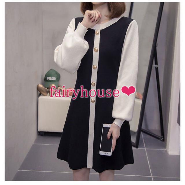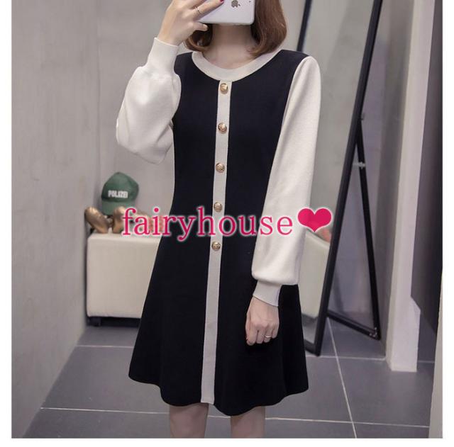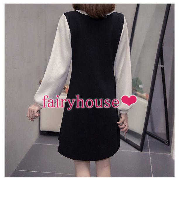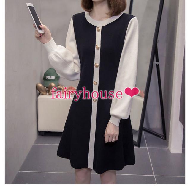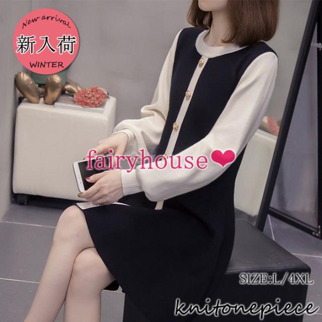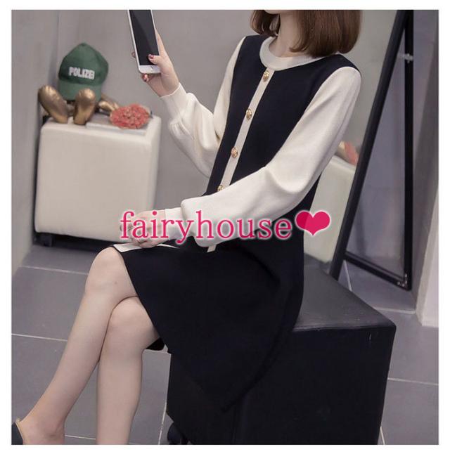 ニットワンピース レディース 膝丈ワンピース 秋冬新作 長袖ワンピース 配色 ロング丈ワンピース ニットスカート オシャレ通勤 韓国風 着痩せ 30代40代50代