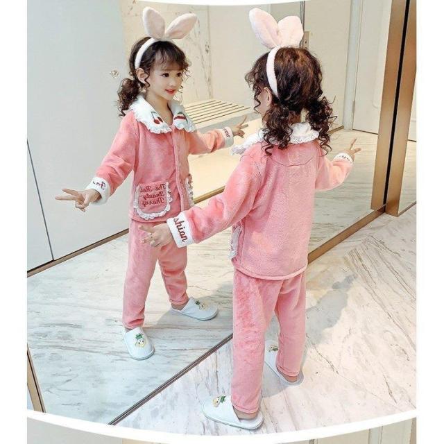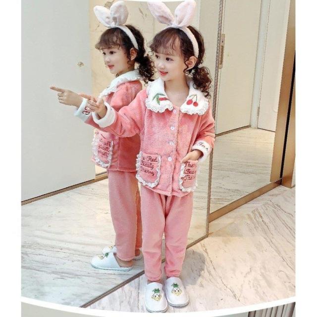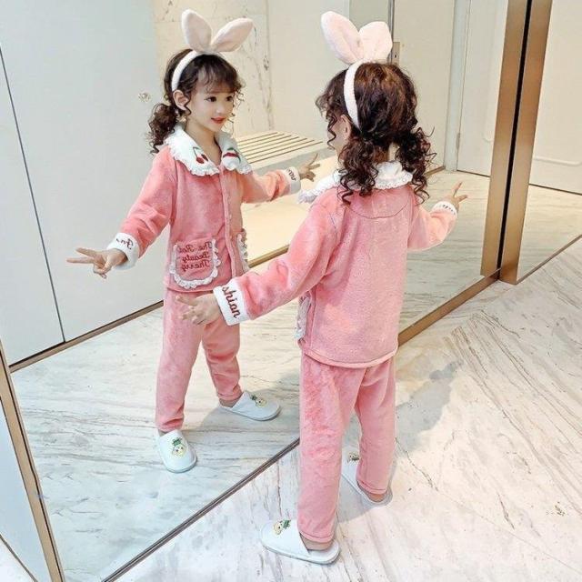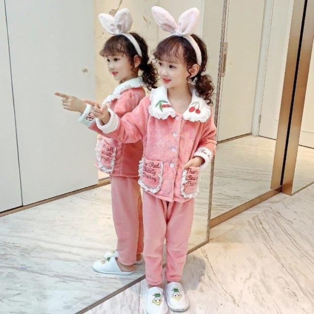 子供パジャマ 冬 モコモコ 女の子 フランネル ルームウェア レース 刺繍 可愛い パジャマ 長袖 上下セット ベビー服 キッズ ジュニア 寝巻き 冬服