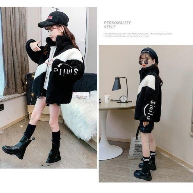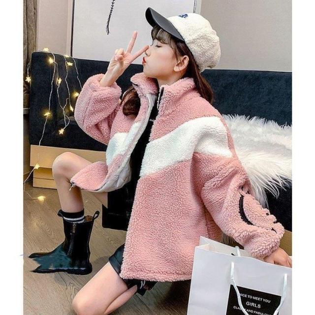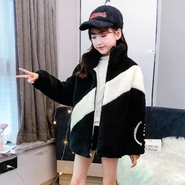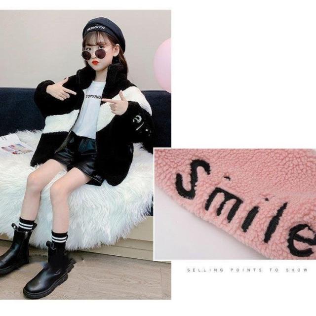 子供用 女の子 ムートン調コート 秋冬 長袖 裹起毛ジャケット ボアコート 子供服 キッズ アウター 配色 寒さ対策 暖かい シンプル モコモコ 厚手 綿服