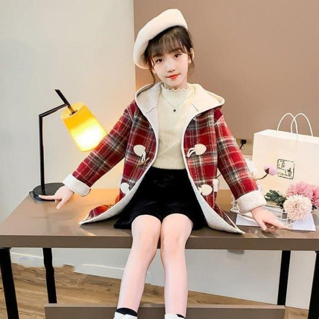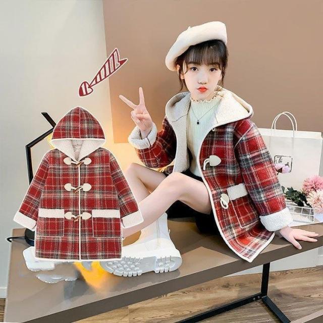 コート 子供服 キッズ コート 女の子 冬服 コート 帽付き 裏起毛 ロングコート チェック柄 厚手 ジュニア服 おしゃれ お出かけ 通園 通学 子ども服