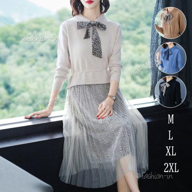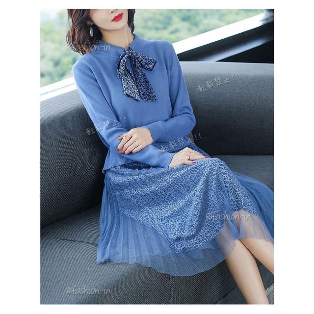 ニットワンピース レディース 40代 Vネック 韓国風 セーターワンピース 通勤 長袖 きれいめ ロングワンピ 秋冬 着痩せ レース 上品 大人 おしゃれ 30代 50代