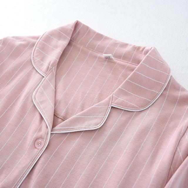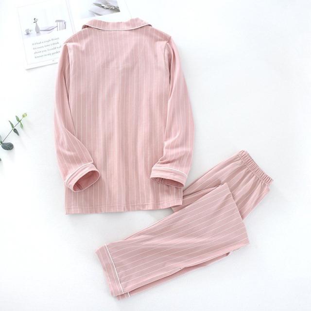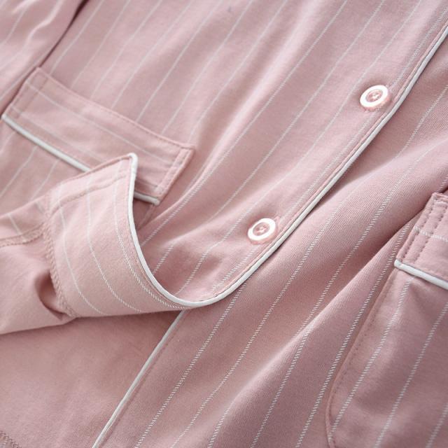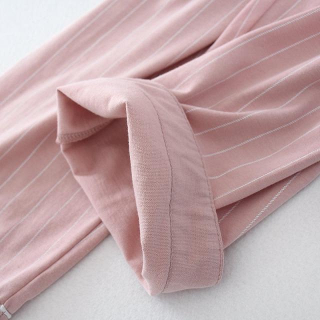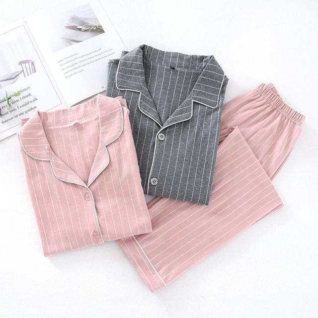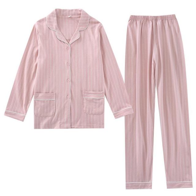 コットンペアパジャマ カップル ボーダー綿100% ルームウェア お揃い パジャマ前開き 襟付き 長袖長ズボン上下セット 部屋着 春夏秋冬用