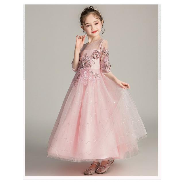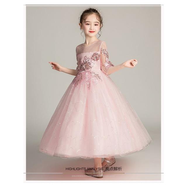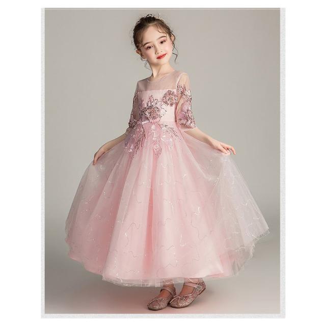子供 ドレス レース ワンピース 子ども ドレス ジュニア フォーマル用 ピアノ発表会 無地 ドレス 結婚式 演出 女の子 花嫁 キッズ ドレス ピンク 3色