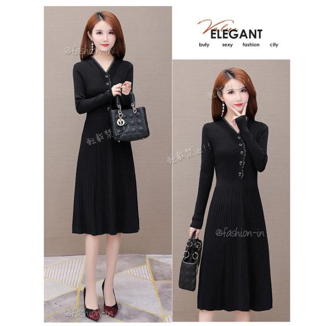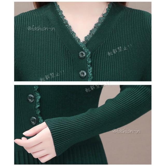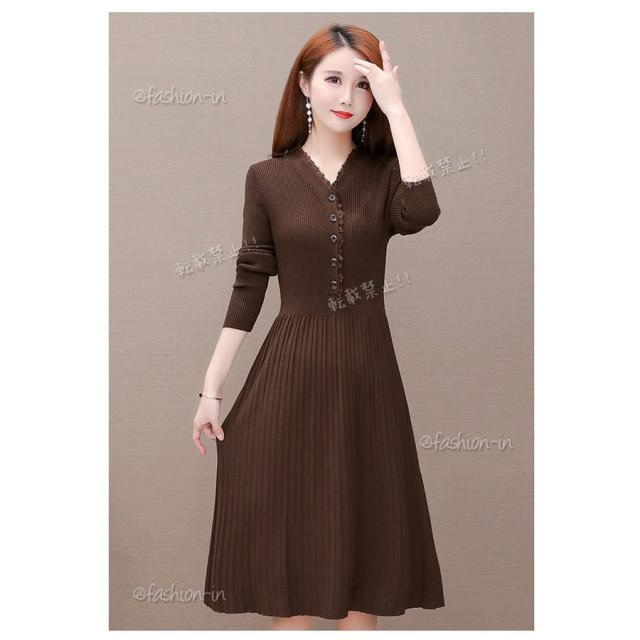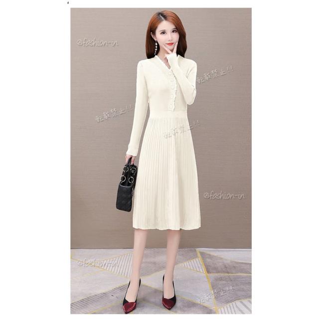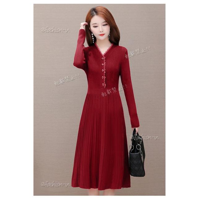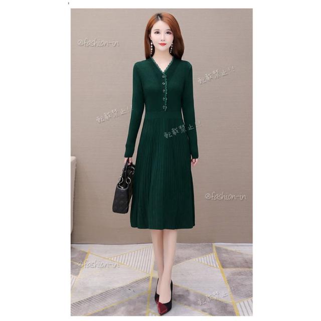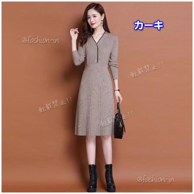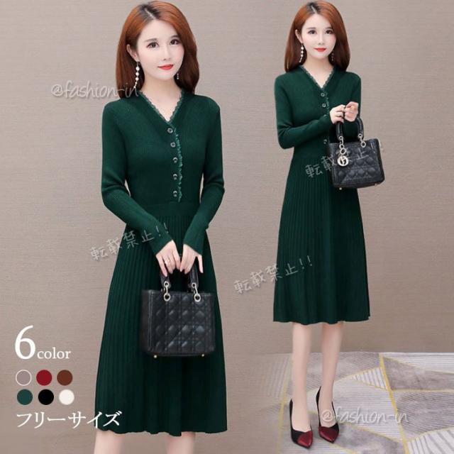 ニットワンピース レディース 40代 Vネック 韓国風 セーターワンピース 通勤 長袖 きれいめ ロングワンピ 秋冬 着痩せ 上品 大人 おしゃれ 30代 50代
