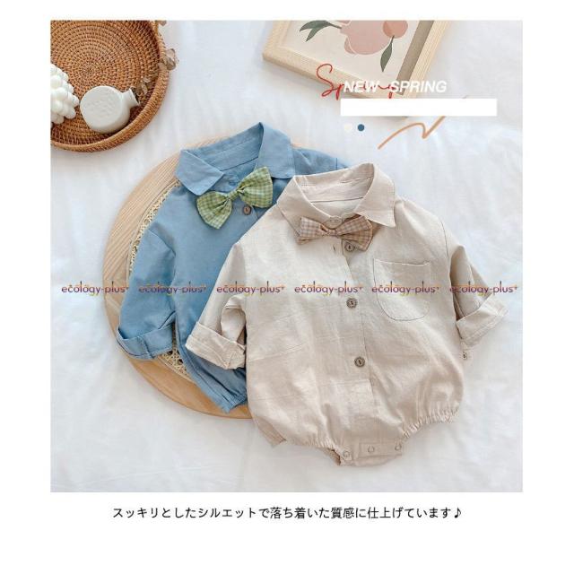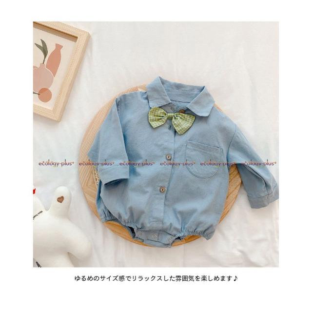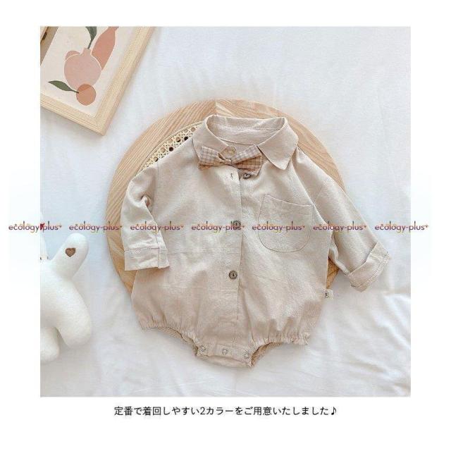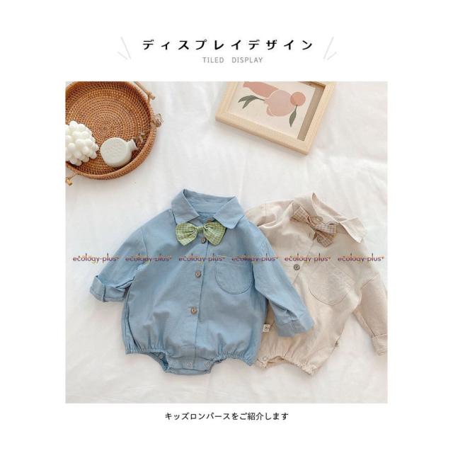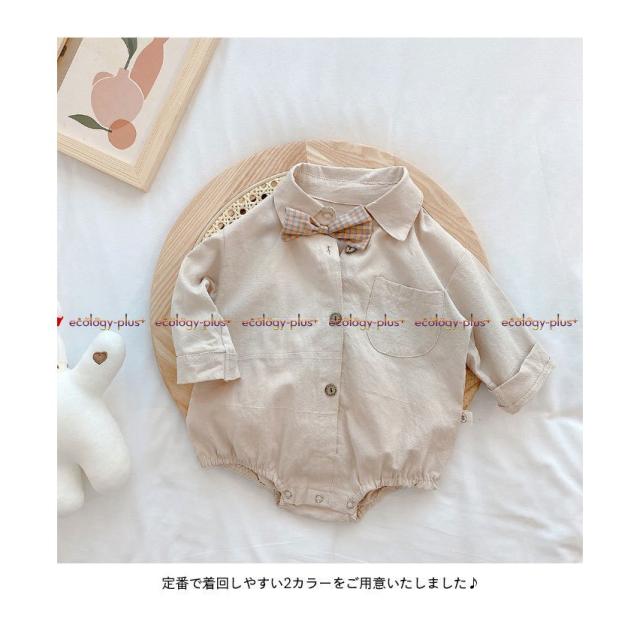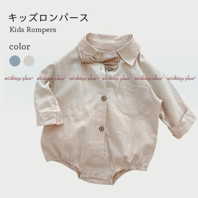 ロンパース ベビー キッズ つなぎ服 男の子 女の子 春 夏 長袖 コットン シャツ 無地 コンビネーション おしゃれ 可愛い オールインワン 子供服