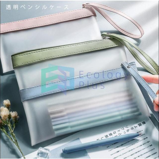 クリアペンケース 文房具 ペンケース 筆箱 収納ポーチ 透明 ファスナー 持ち手付き 筆入れ 便利 シンプル 学生 きれいめ おしゃれ