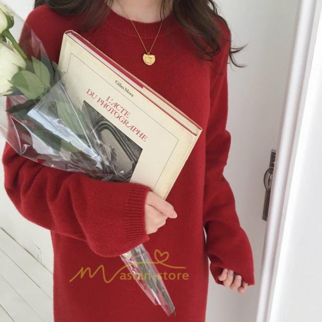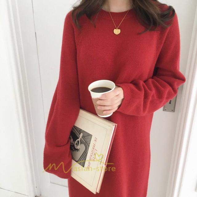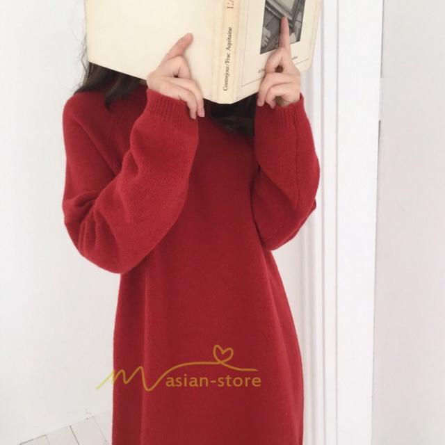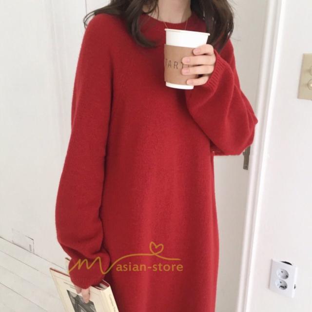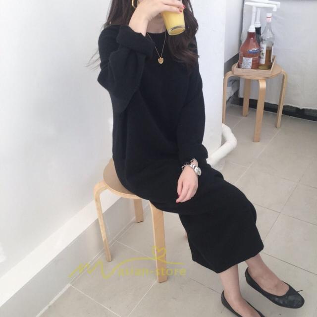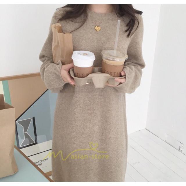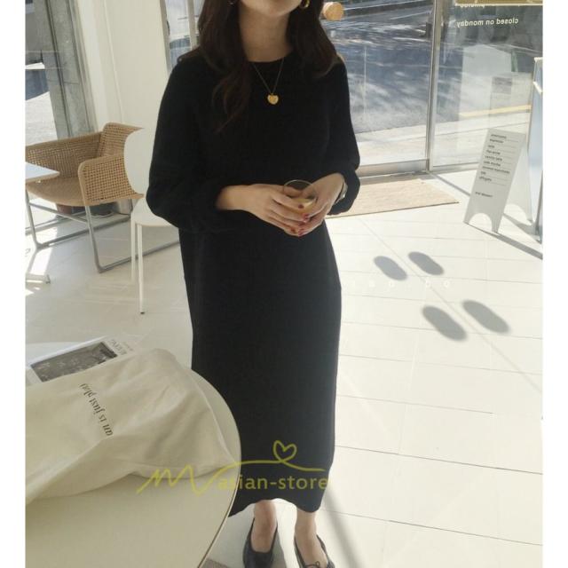 ワンピース レディース 40代ワンピース 秋新作 長袖ワンピース きれいめ ニットワンピース シンプル 韓国ファッション 秋服 通勤通学 ゆったり 体型カバー 上品