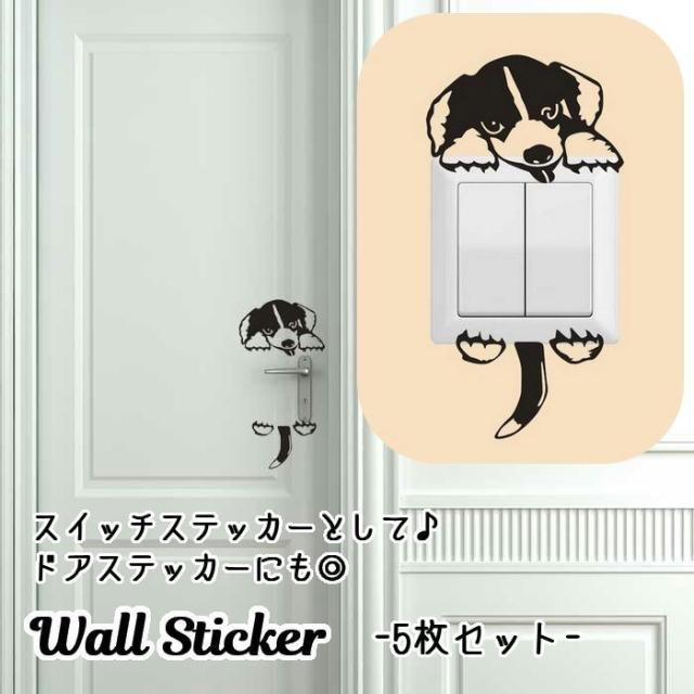ウォールステッカー スイッチステッカー 5枚セット ドアステッカー コンセントステッカー 壁紙 タイプ イヌ ドッグ いぬ 犬しっぽ 手足
