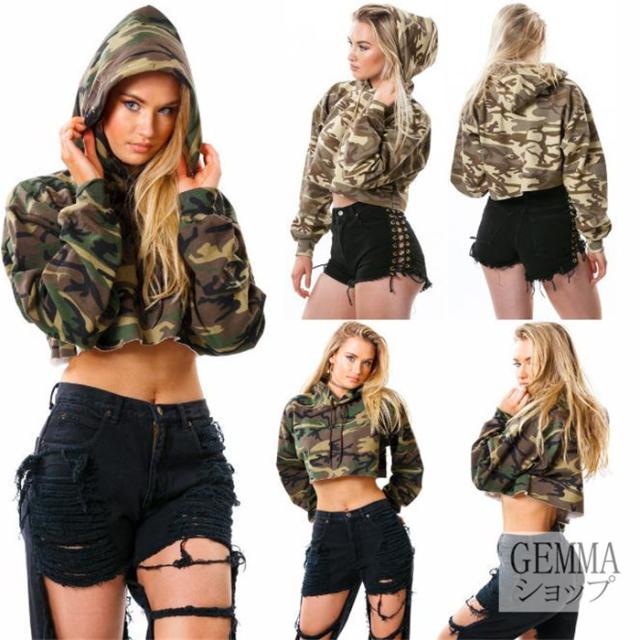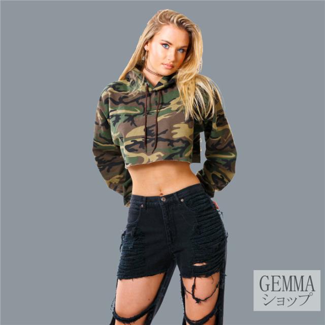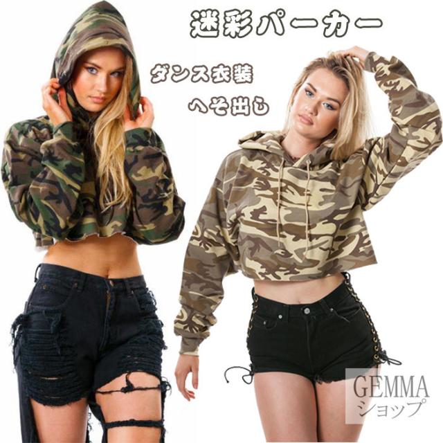 迷彩トップス レディース パーカー ショート丈 へそ出し 大人ダンス衣装 長袖 個性 ヒップホップ ジャズ 韓舞