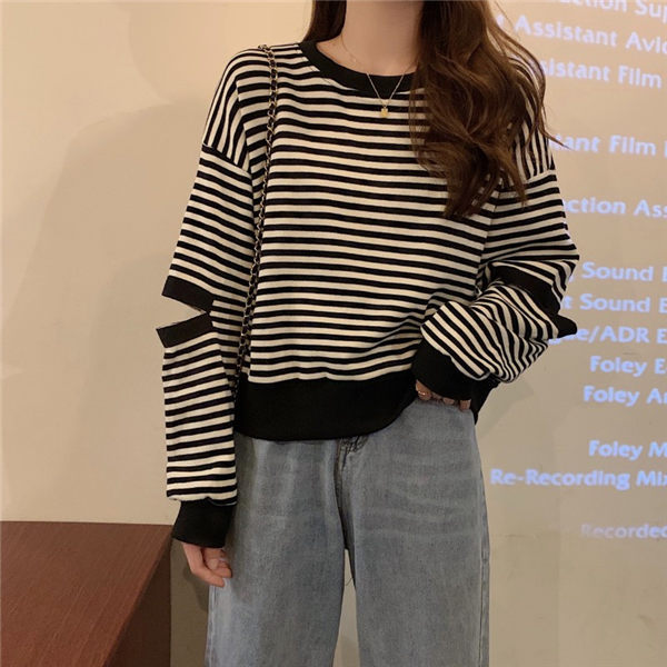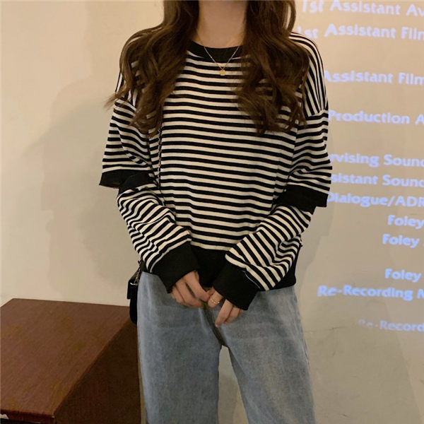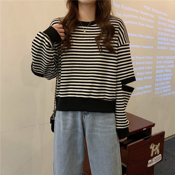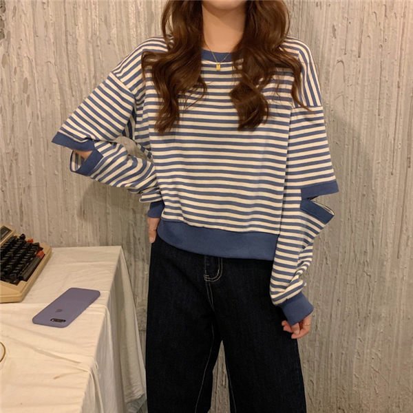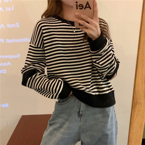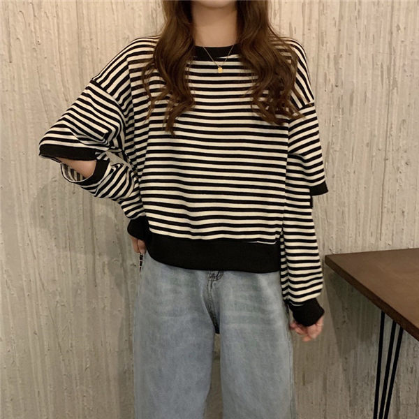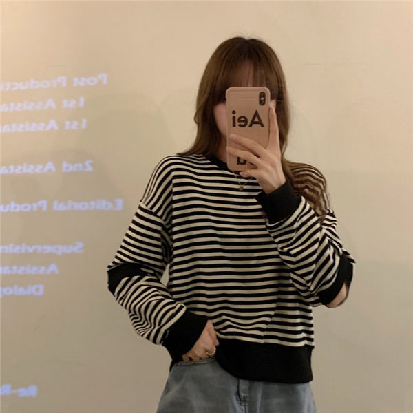 トレーナー レディース トレーニングウェア 可愛い トレーナー 秋服 秋服トレーナー 春秋トレーナー ストライプ柄 韓国風 春秋
