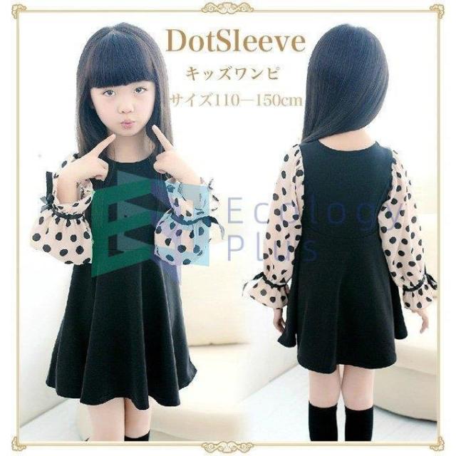 ワンピース 女の子 ドット柄 シフォン袖 フォーマルワンピース 長袖 子供ワンピース キッズドレス 子供服 ジュニア ハロウィンプレゼント