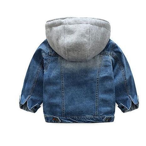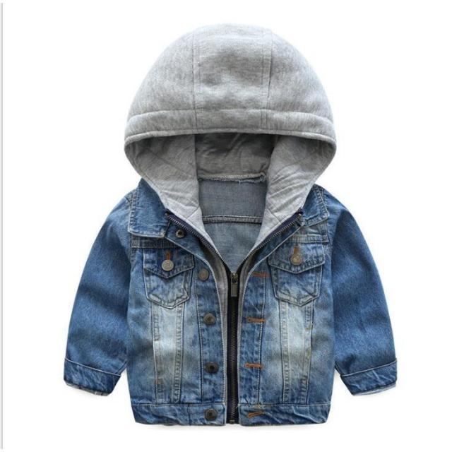 キッズデニムジャケット/ フード付きアウター 男の子着用 ジャケット/春秋着用 アウター通学/防寒/秋冬