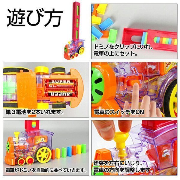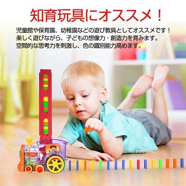 ドミノ おもちゃ ドミノ電車 ドミノ 倒し おもちゃ 子供 子ども 知育 おもちゃ ブロック 色認識 車 自動配置 楽しい ライト 効果音 ドミノ牌 80PCS プレゼント