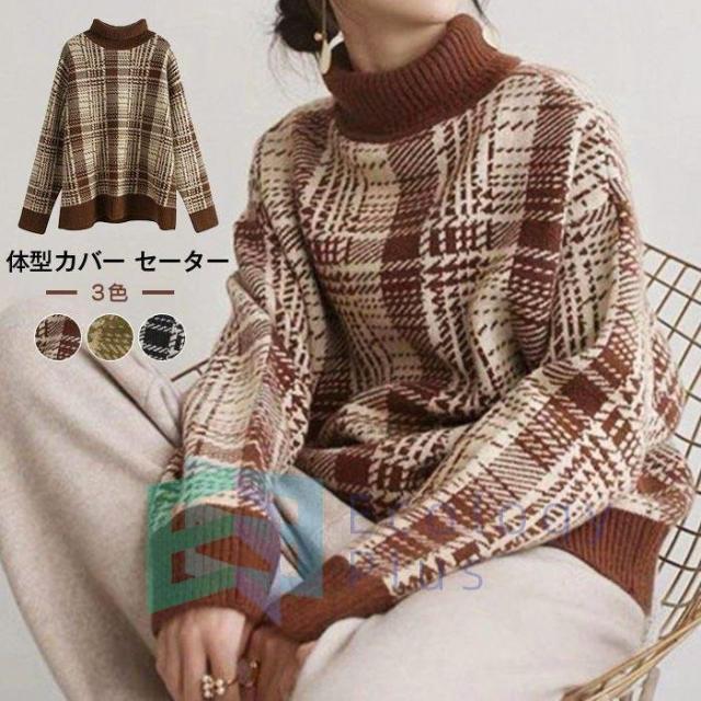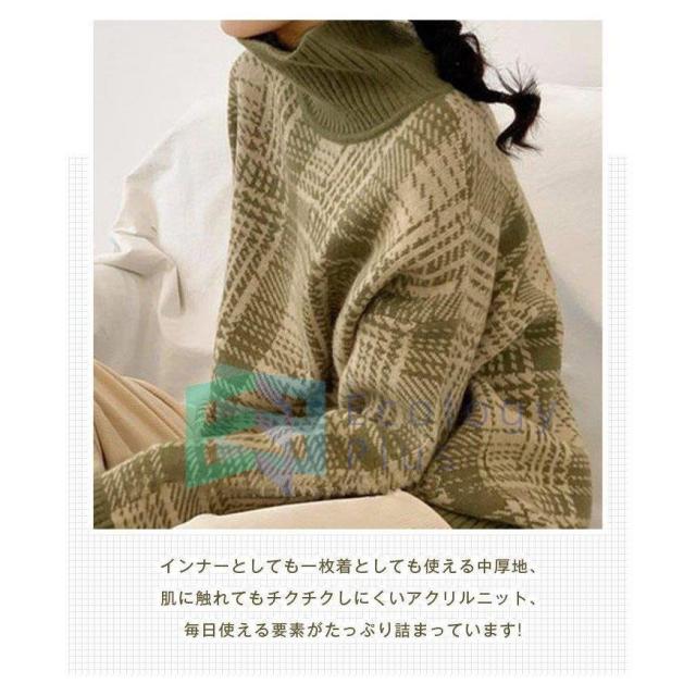 セーター ニット 長袖 レディース トップス レディース ニットソー ソフト ノルディック柄 かわい ハイネック シンプル カジュアル ゆったり 通勤 秋 冬
