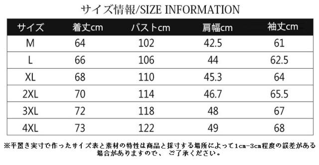 | サイズについての説明 | サイズ:M L XL 2XL 3XL 4XL |