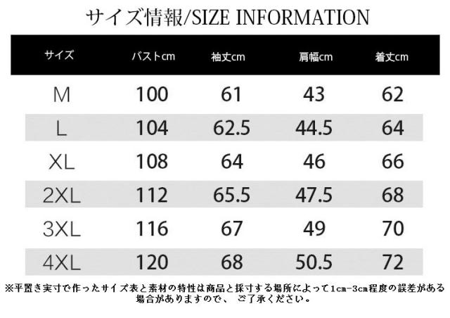 | サイズについての説明 | サイズ:M L XL 2XL 3XL 4XL |
