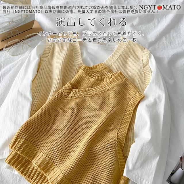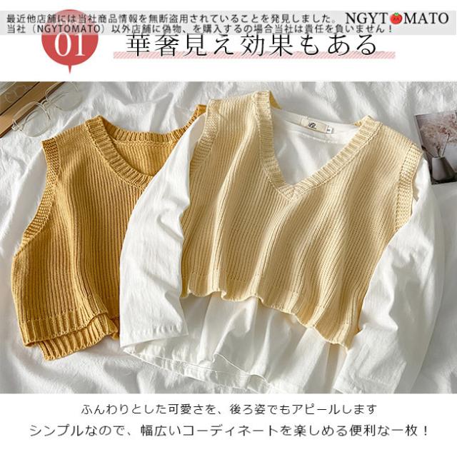 ニットベスト レディース ベスト ノースリーブ ショート丈 Vネック 重ね着トップス セーター 袖なし 大人 おしゃれ 可愛い 春 秋 秋冬 大きいサイズ