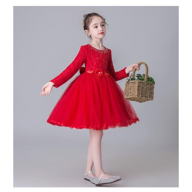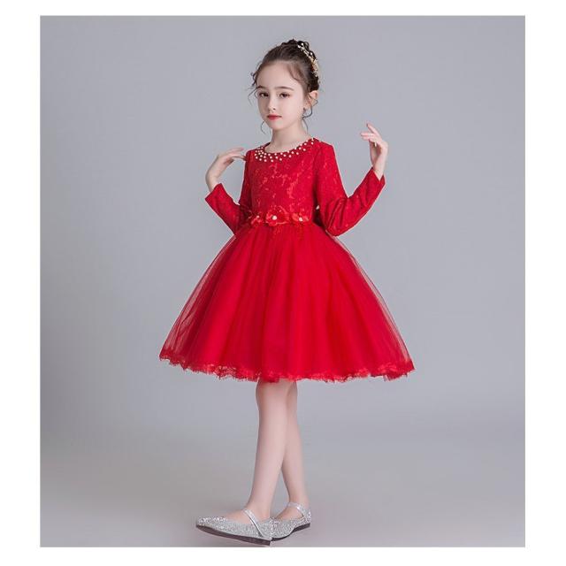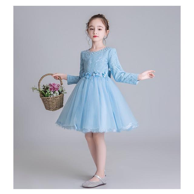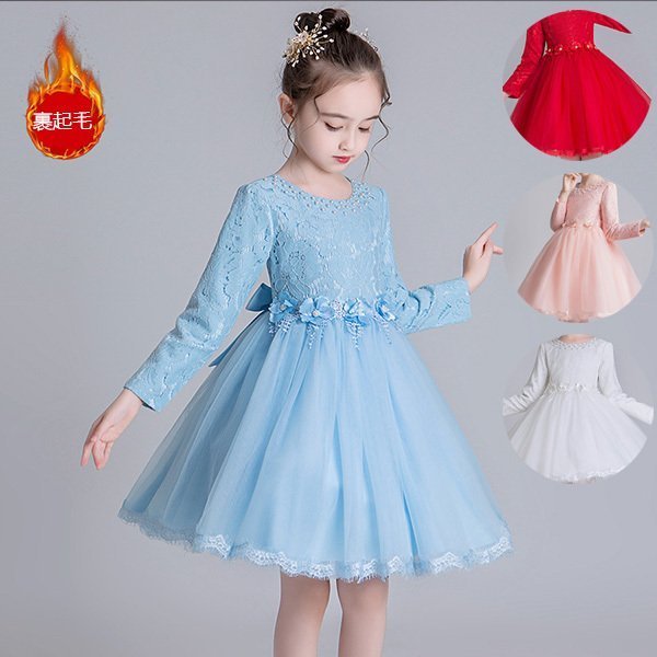 子供 ドレス 長袖 レース チュール ワンピース 薄/裹起毛 ジュニアドレス 春秋冬 フォーマル用 ピアノ発表会 子供ドレス 結婚式 演出 女の子 キッズ ドレス