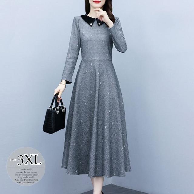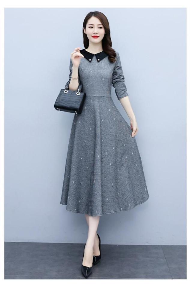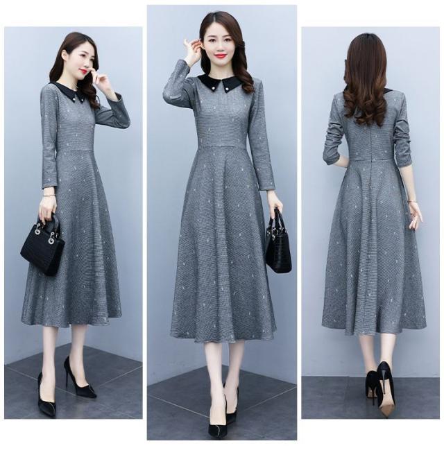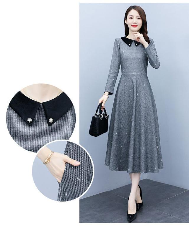 ワンピース 襟付き ウエスト切替 ロングワンピース カジュアルウェア 学校行事 可愛い ディナー ママ カジュアル デート 大人可愛い リモート お出かけ