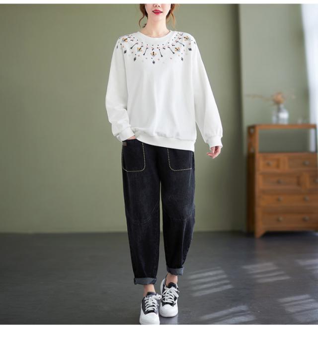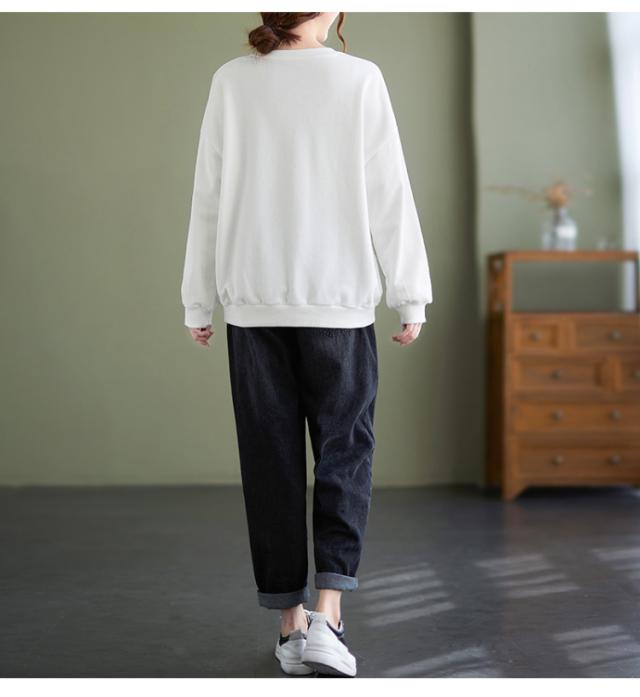 スウェット 長袖 レディース 模様 シンプル おしゃれ 綺麗 組み合わせ 着こなし ゆったり グレー ホワイト ブラック 可愛い ベーシック 魅力的