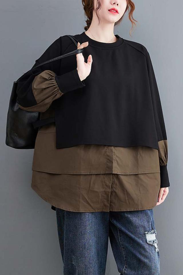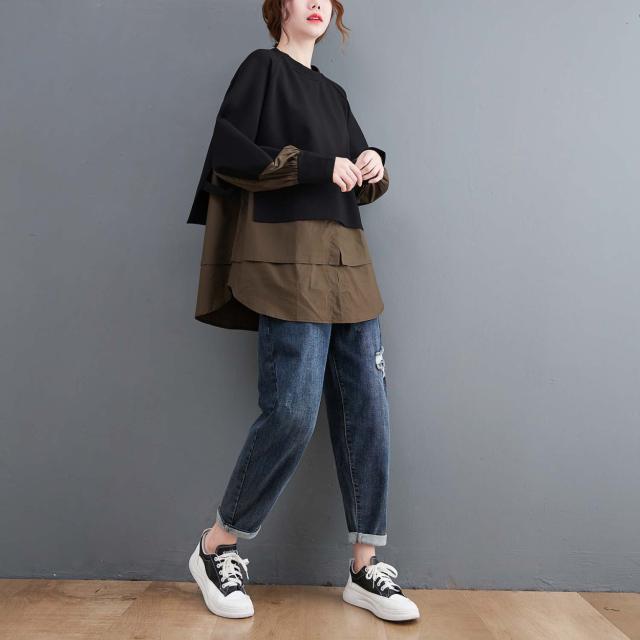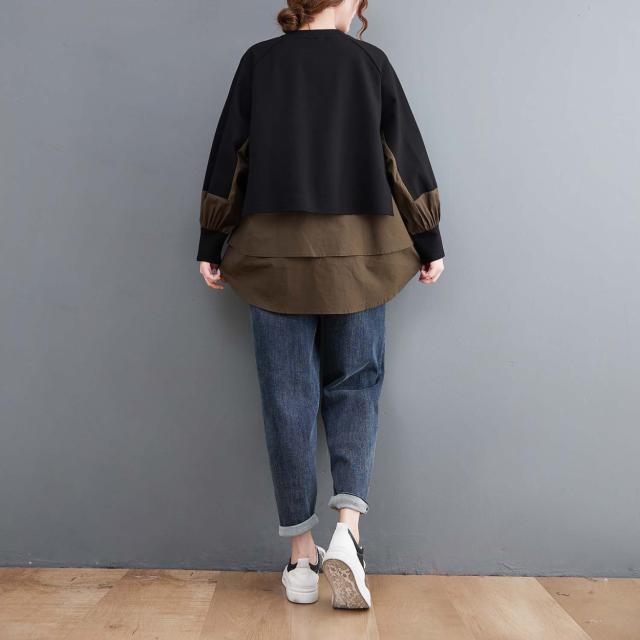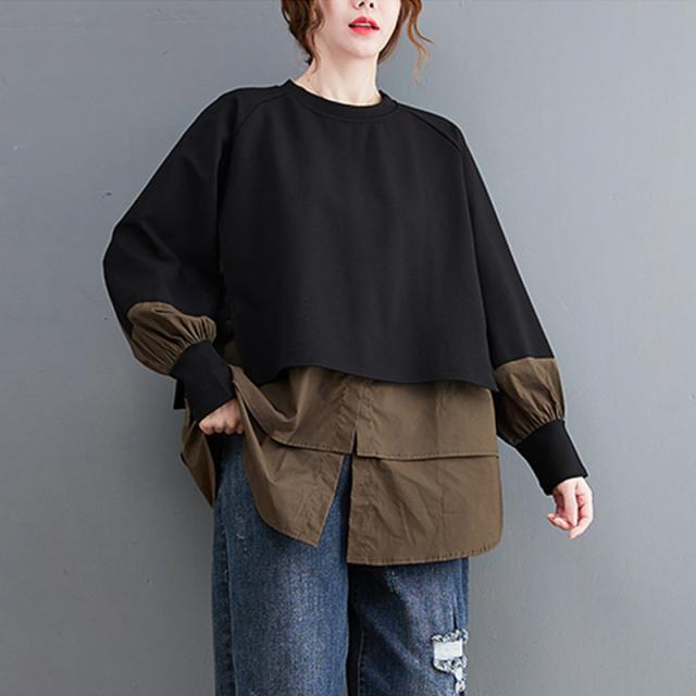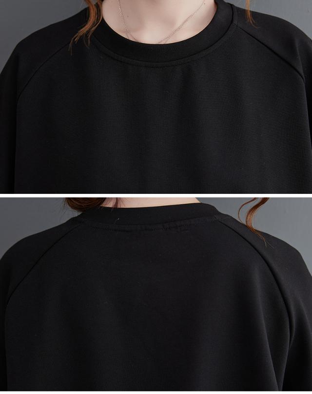 レディース 長袖 スエット トップス ゆったり カジュアル 可愛い 個性的 丸首 着こなし ブラック ベーシック ナチュラル 休日 お洒落 魅力的 魅力的