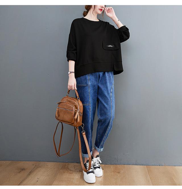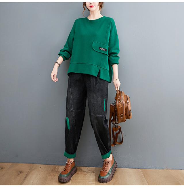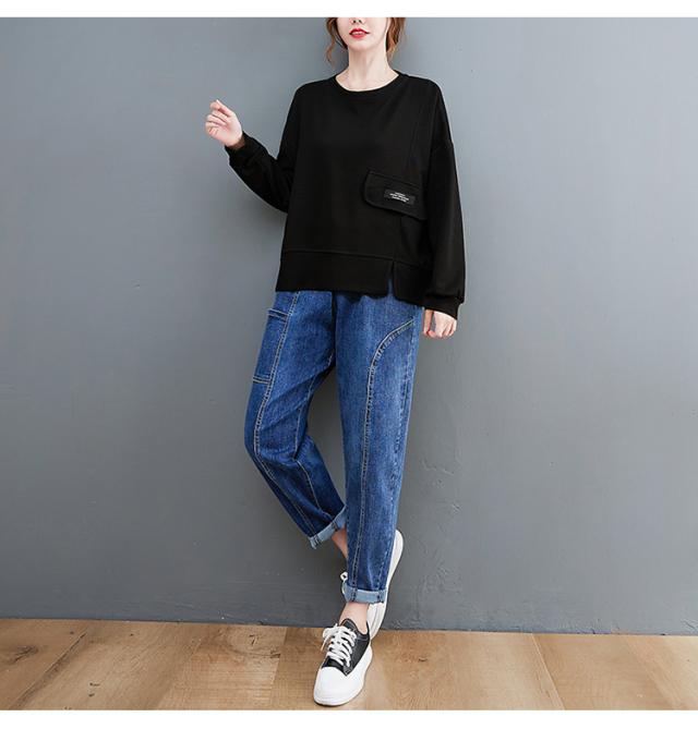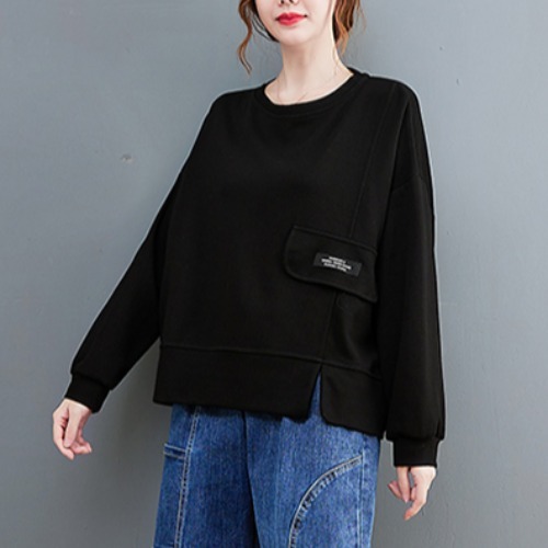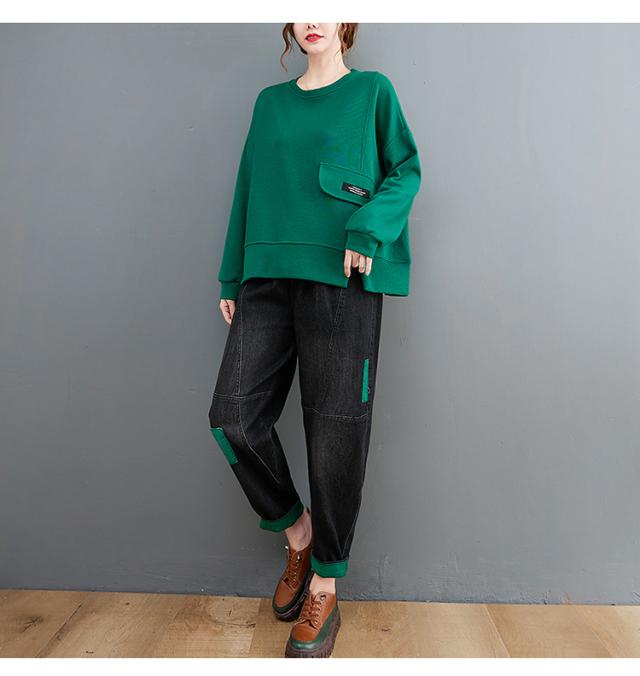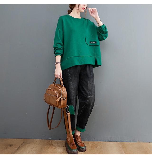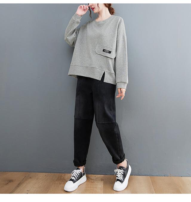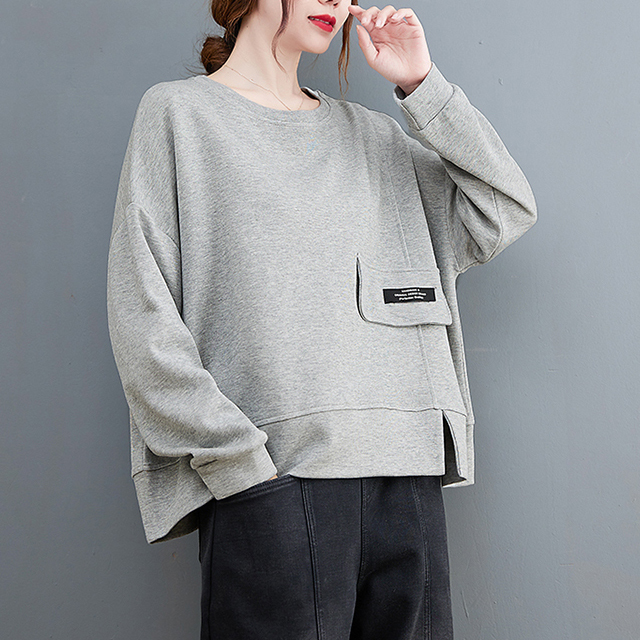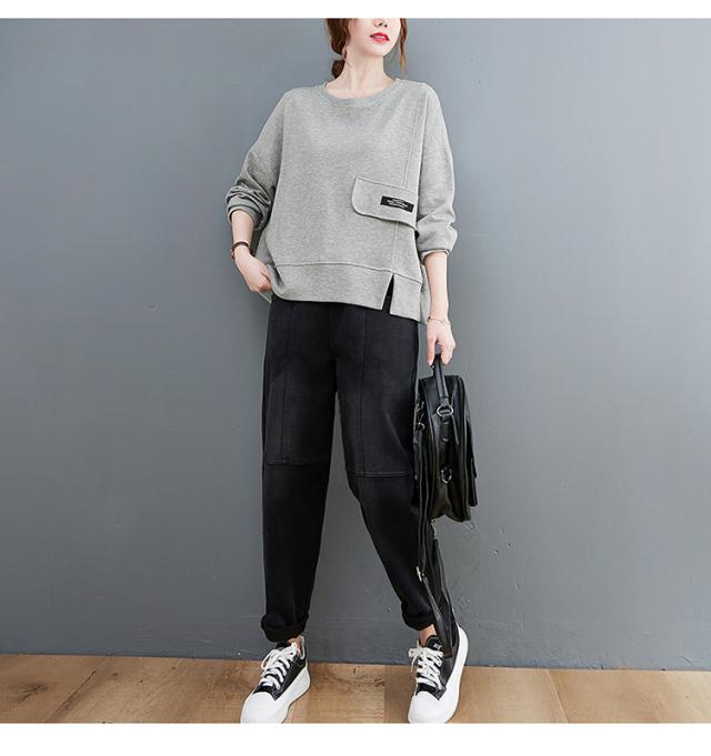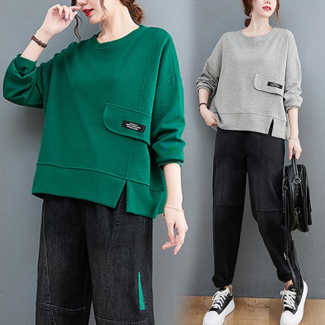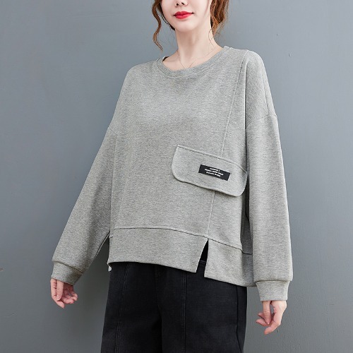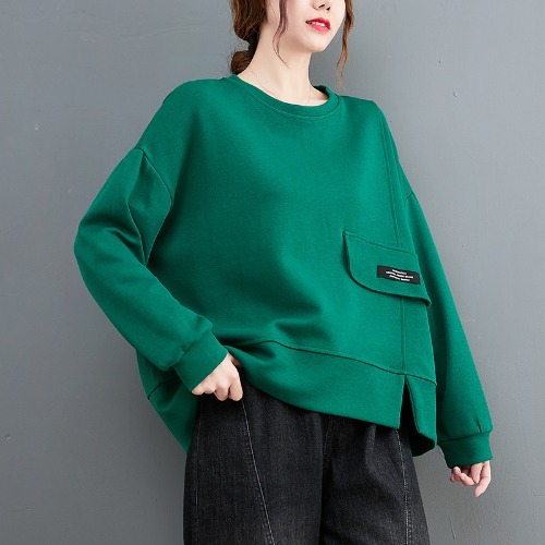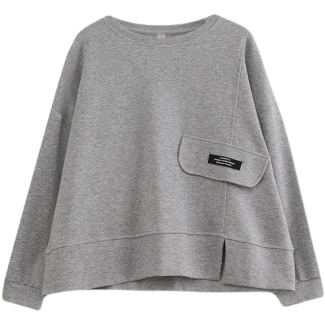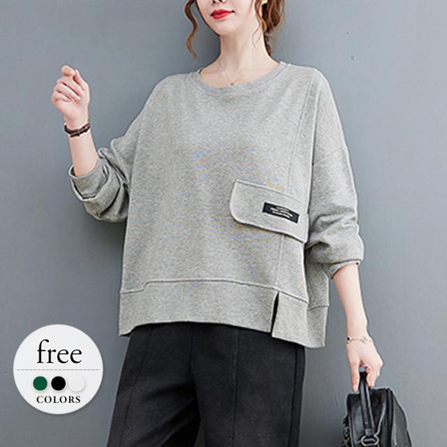 スウェット レディース 長袖 ポケット 丸首 ゆったり シンプル ポケット 個性的 かわいい グレー グリーン ブラック お出かけファッション 魅力的
