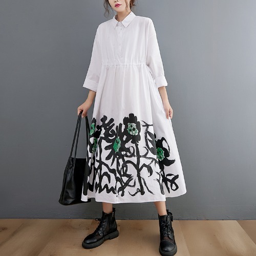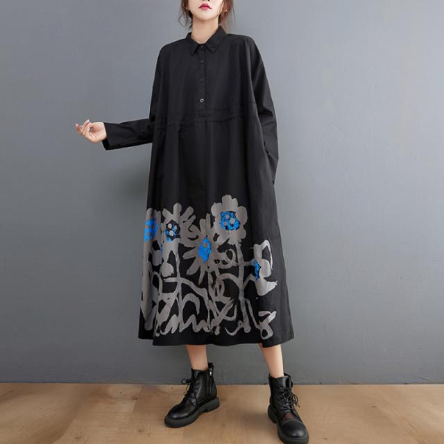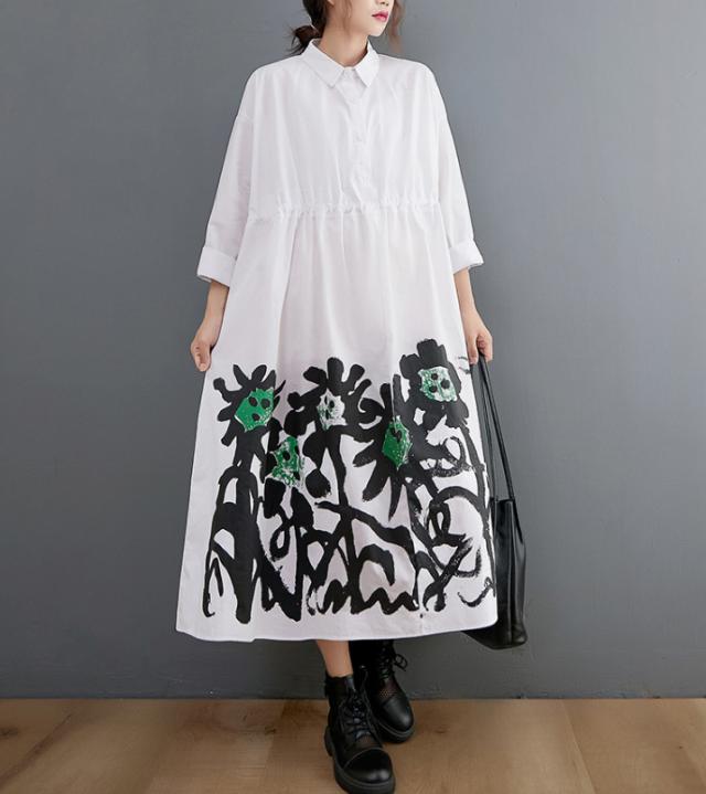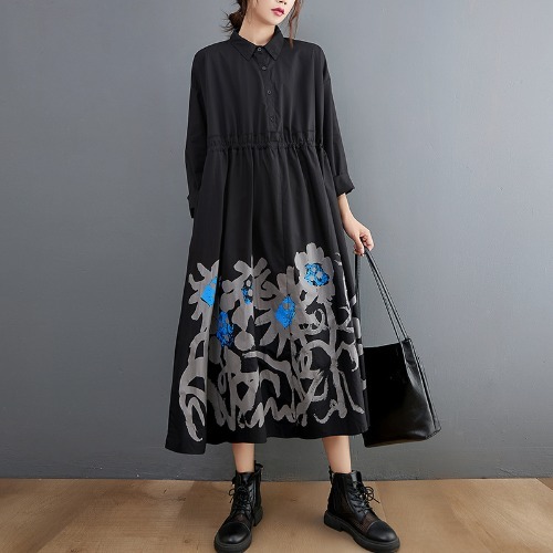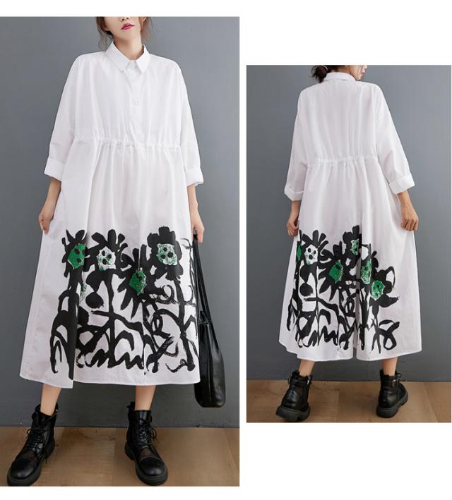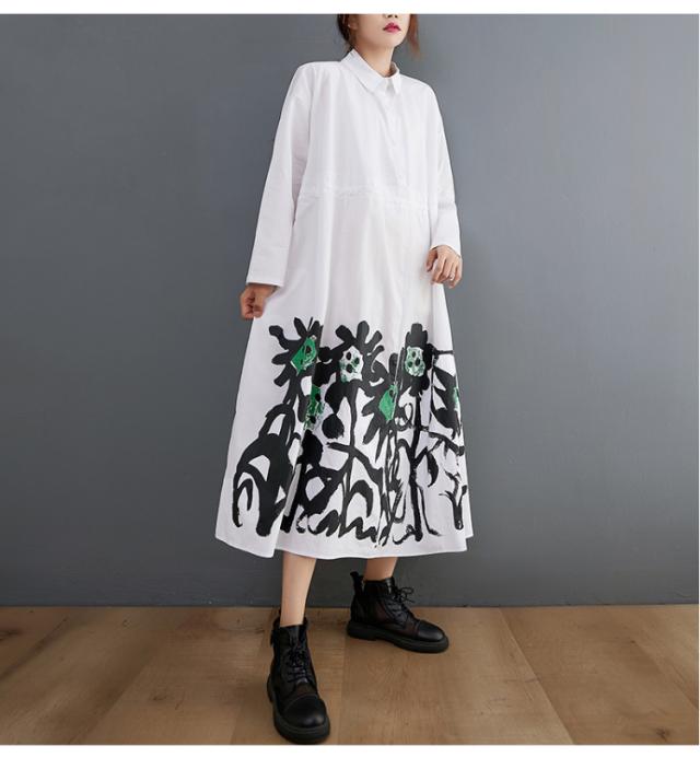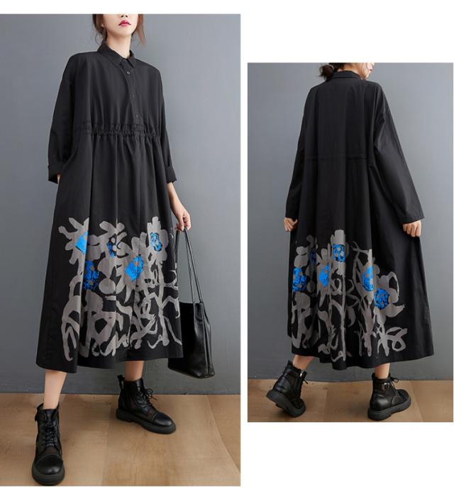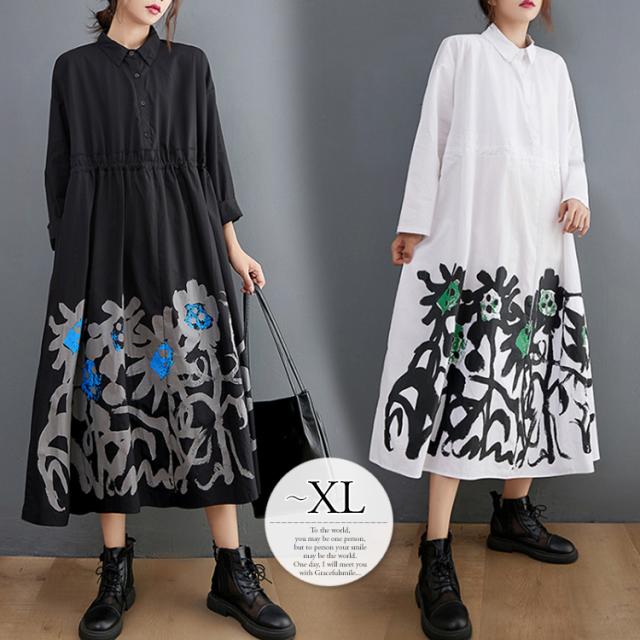 ワンピース ワンピース 長袖 ロング丈 柄 派手 ユニーク 柄 個性的 シンプル 花柄 お花 華やか イベント清楚 ママ ベーシック 美人 可愛い 魅力的