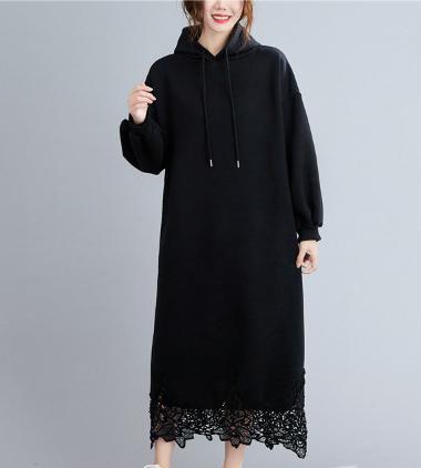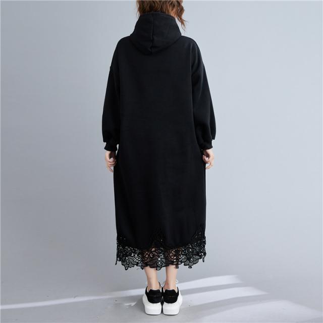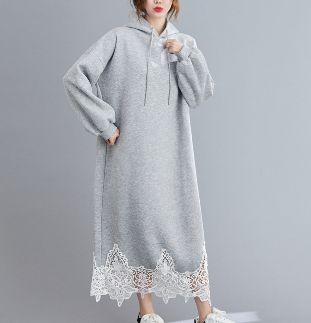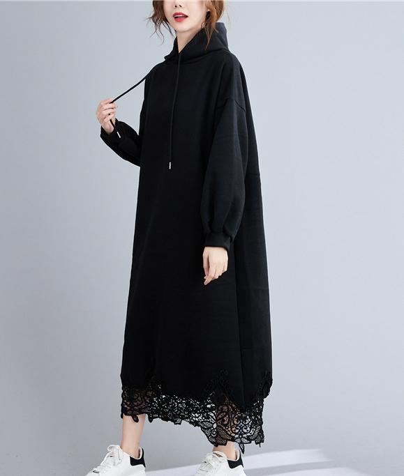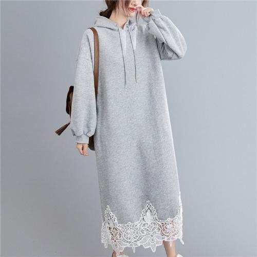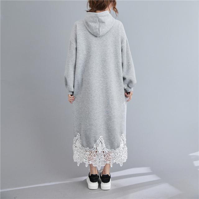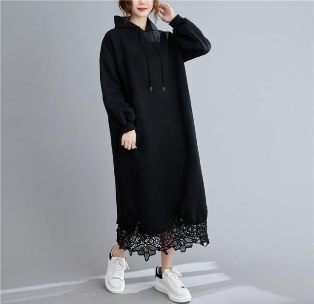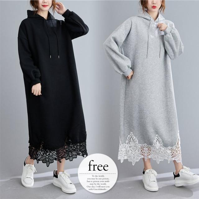 ワンピース レディース ワンピース フードデザイン 長袖 ロング丈 レース 無地 シンプル おしゃれ 動きやす 可愛い お洒落 イベント清楚 ナチュラル