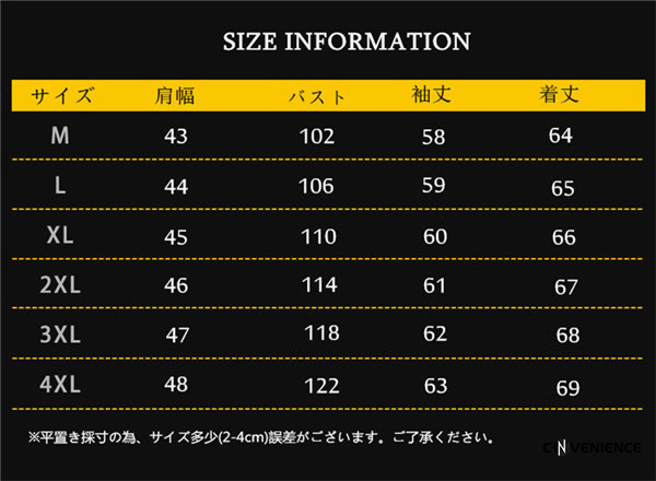 | サイズについての説明 | サイズ:M L XL 2XL 3XL 4XL |