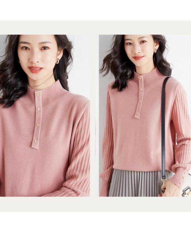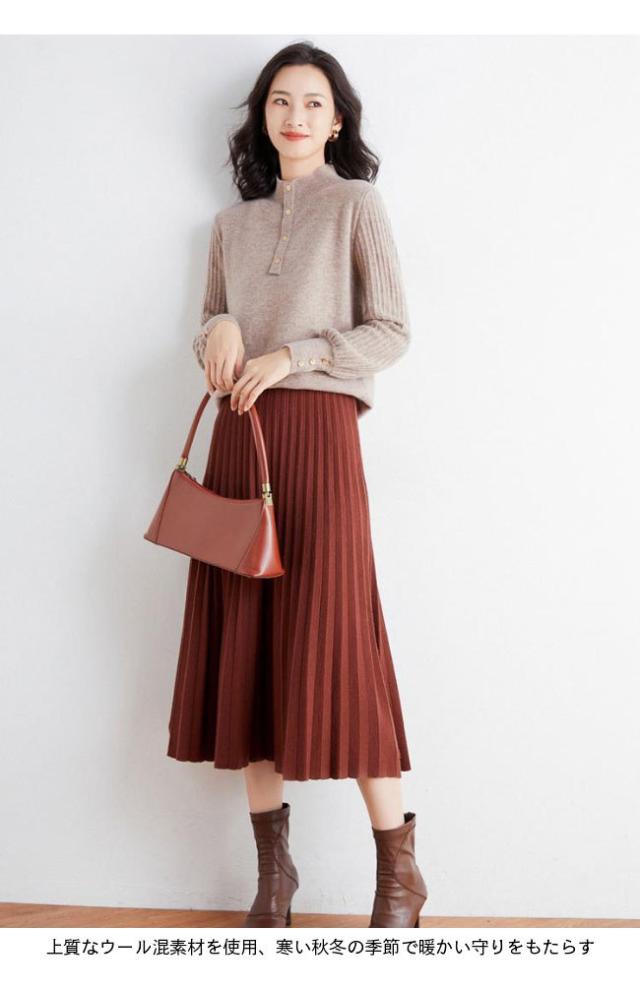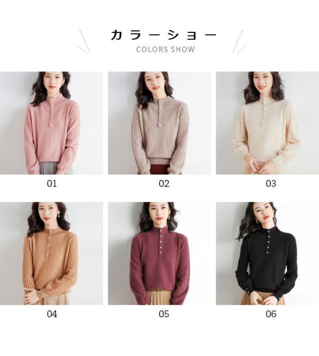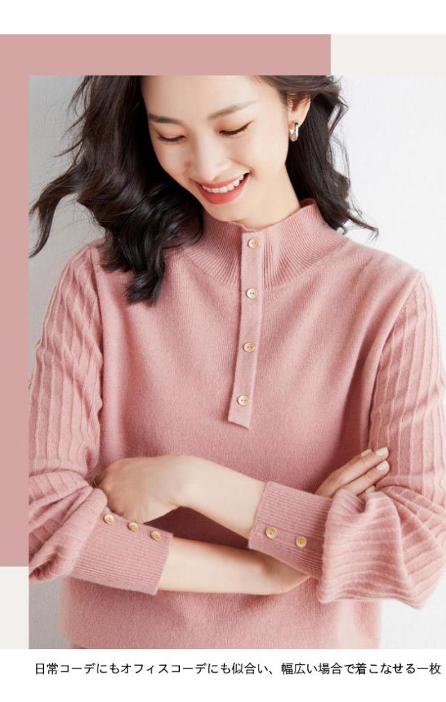 ニットセーター レディース 厚手 ニット トップス ハイネック プルオーバー 暖かい セーター 秋冬 ニットセーター ウール混 立ち襟