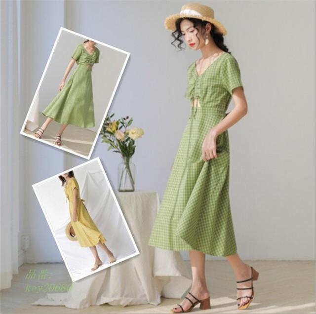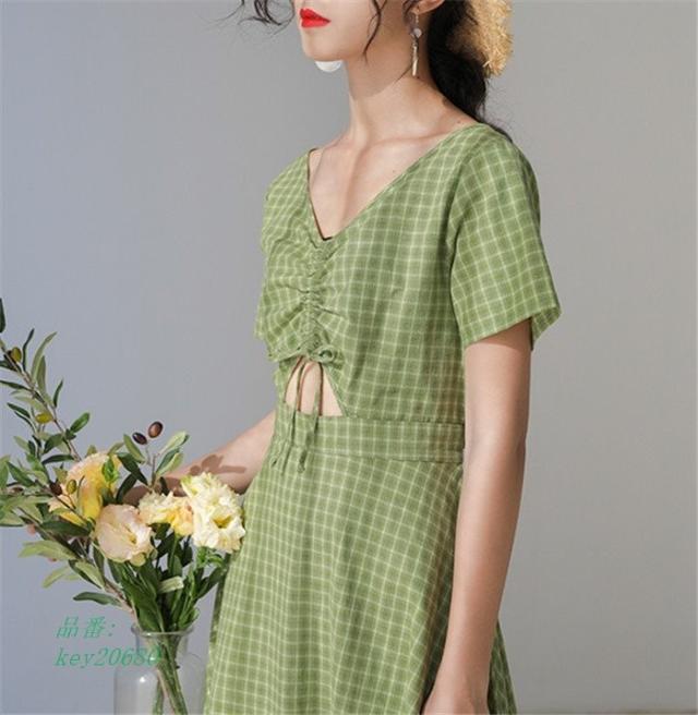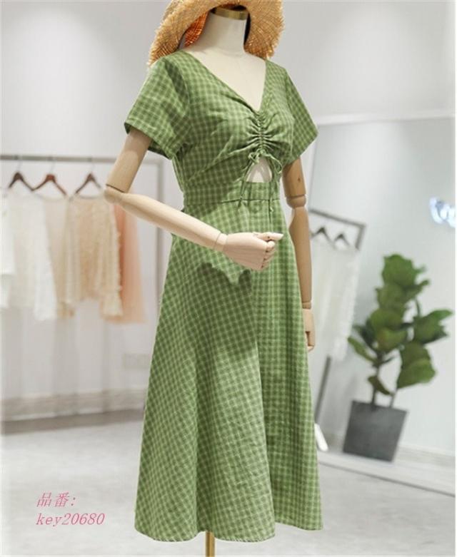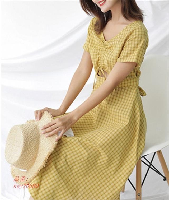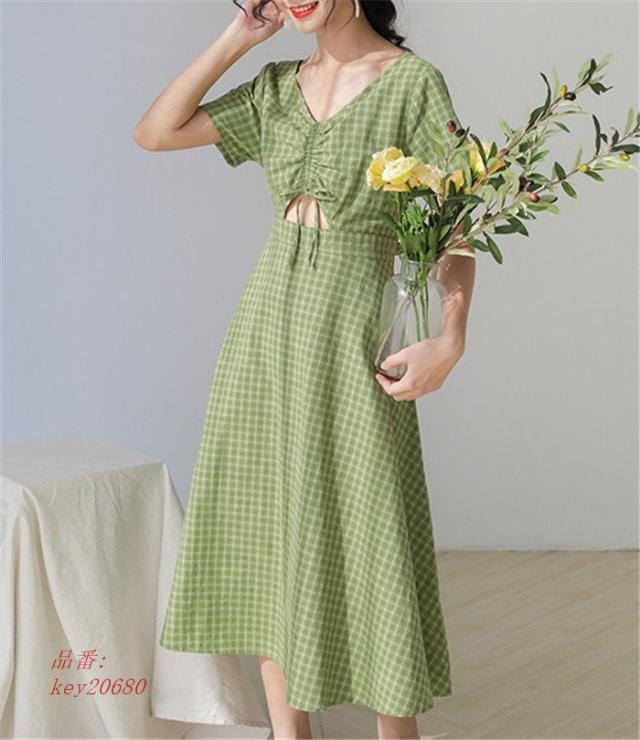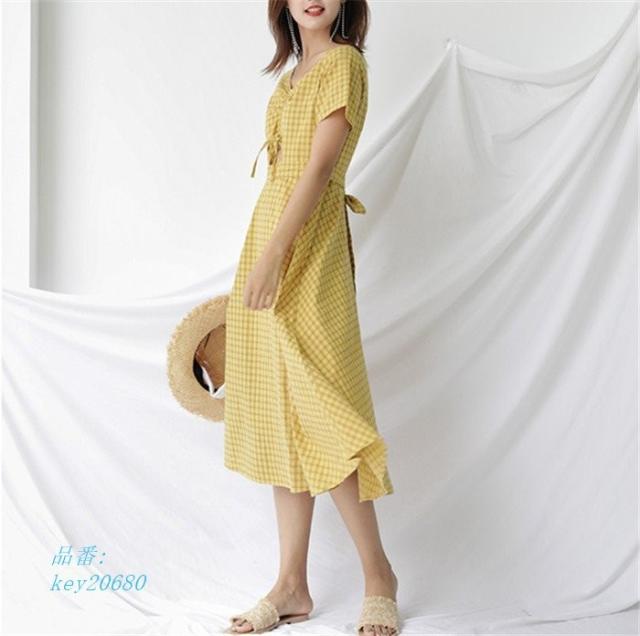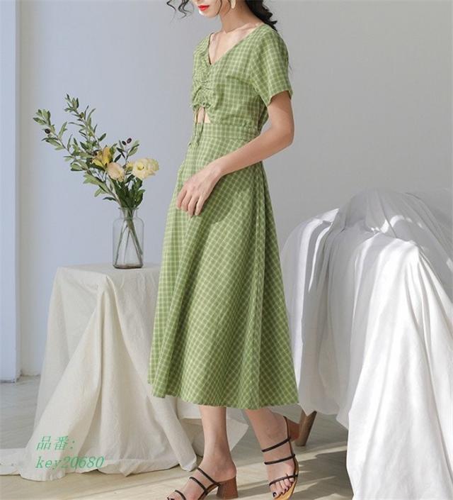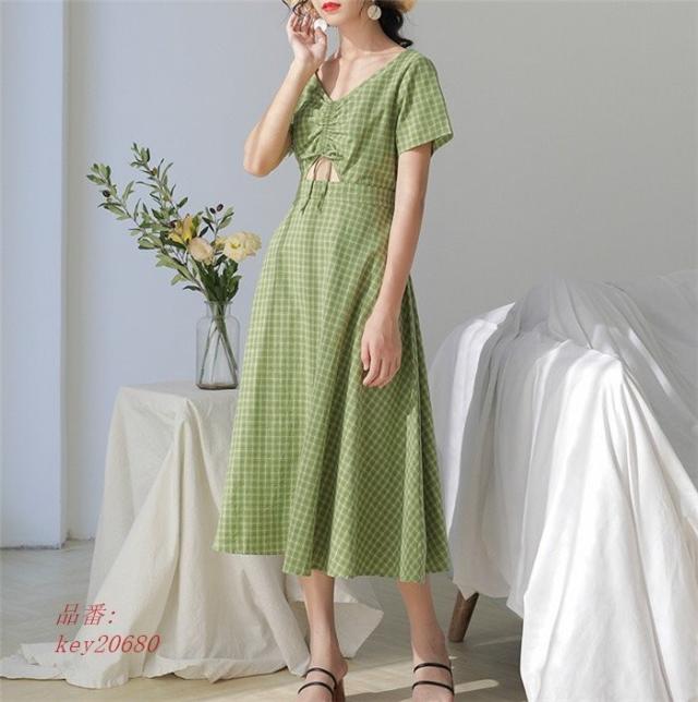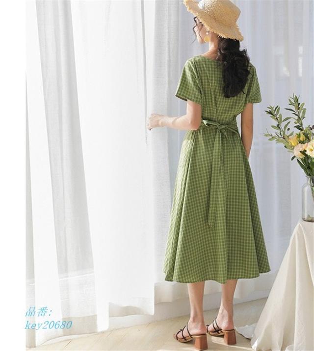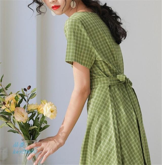 ワンピース レディース 夏 ハイウエスト ロング丈 切り替え 半袖 フレアワンピース aライン フレア ロングワンピース 着痩せ ゆったり 体型カバー チェック柄