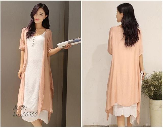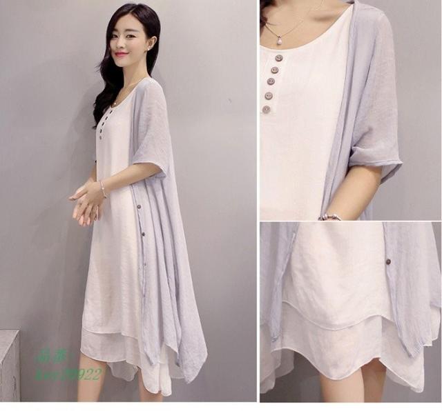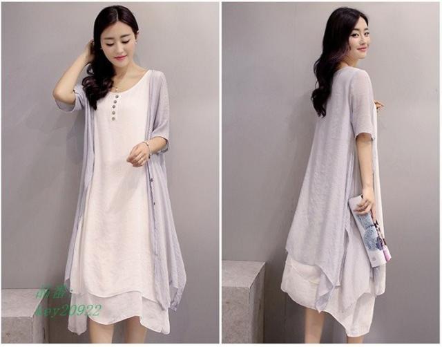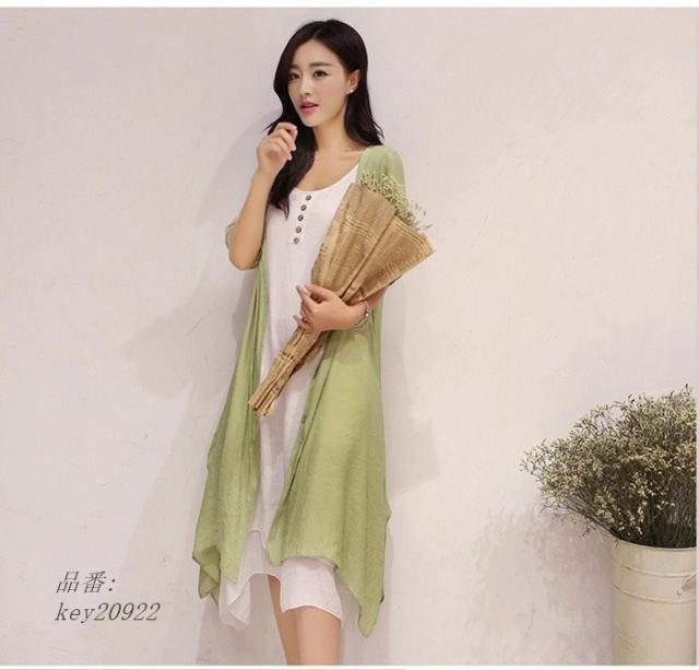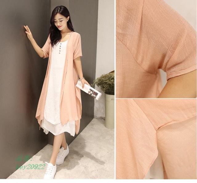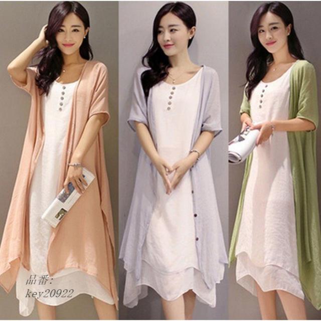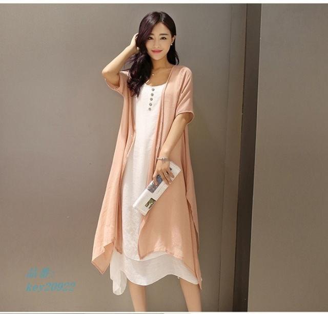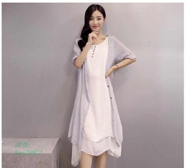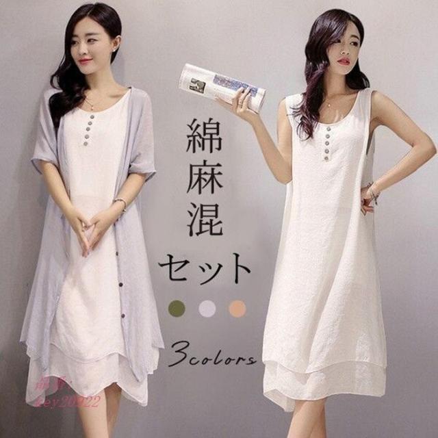 ワンピース 膝丈 夏 ビーチ 綿麻混 ワンピース 大きいサイズ 2点セット ロングカーディガン リゾート リゾートワンピース ロングワンピ ロングワンピース