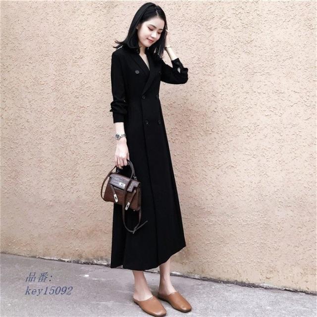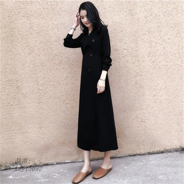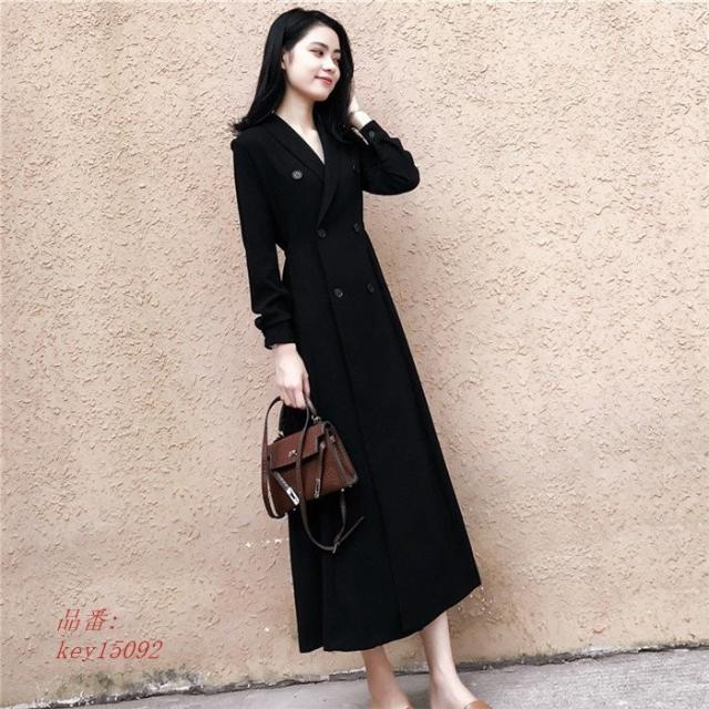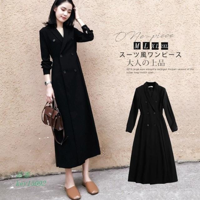 ワンピース レディース 秋 マキシワンピース ブラックドレス スーツ風ワンピース 長袖 フォーマルワンピース 上品 ロング丈 きれいめ 大人 Vネック 二次会ドレス