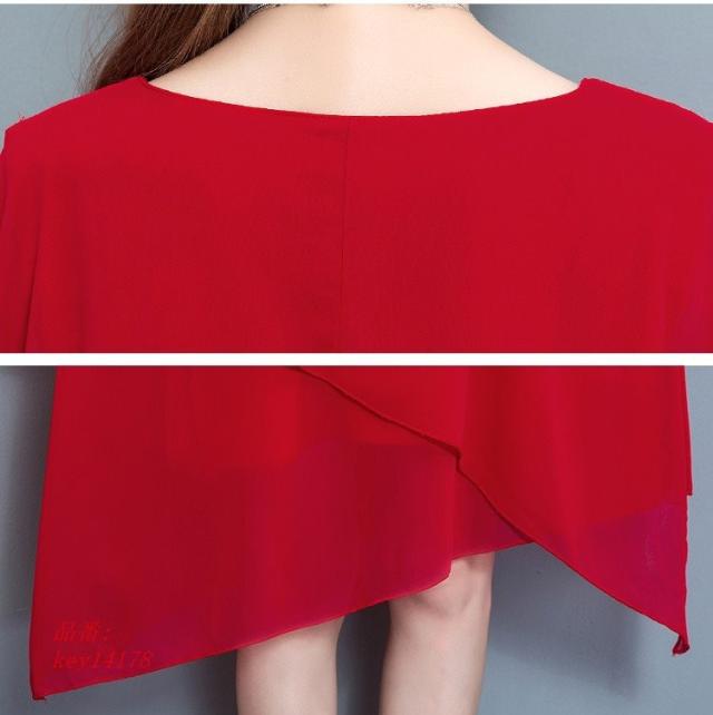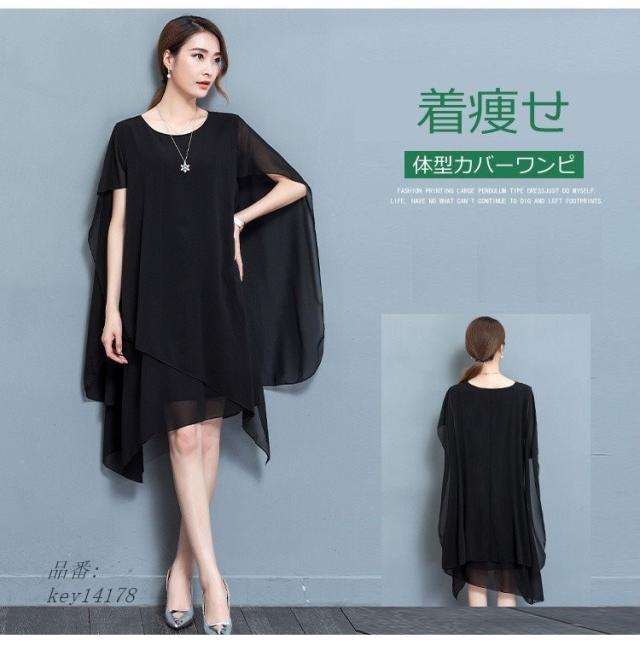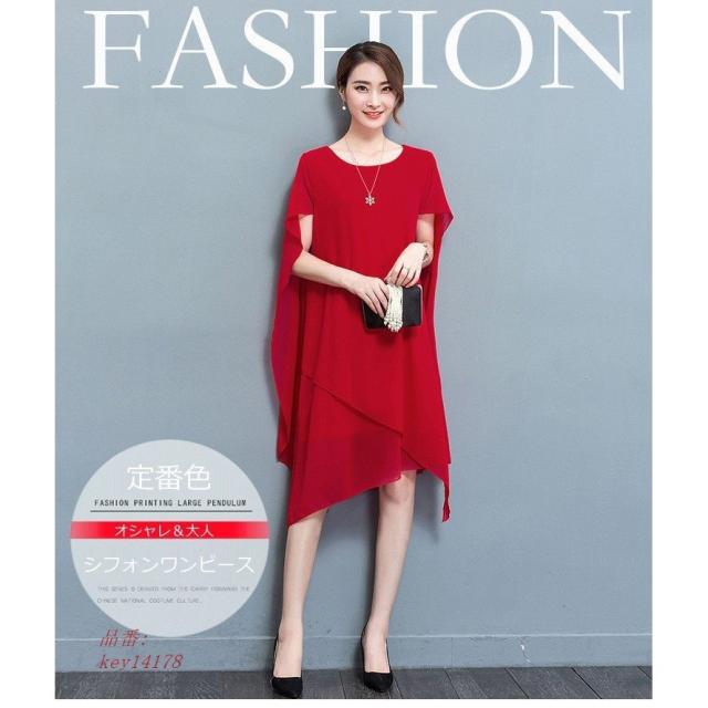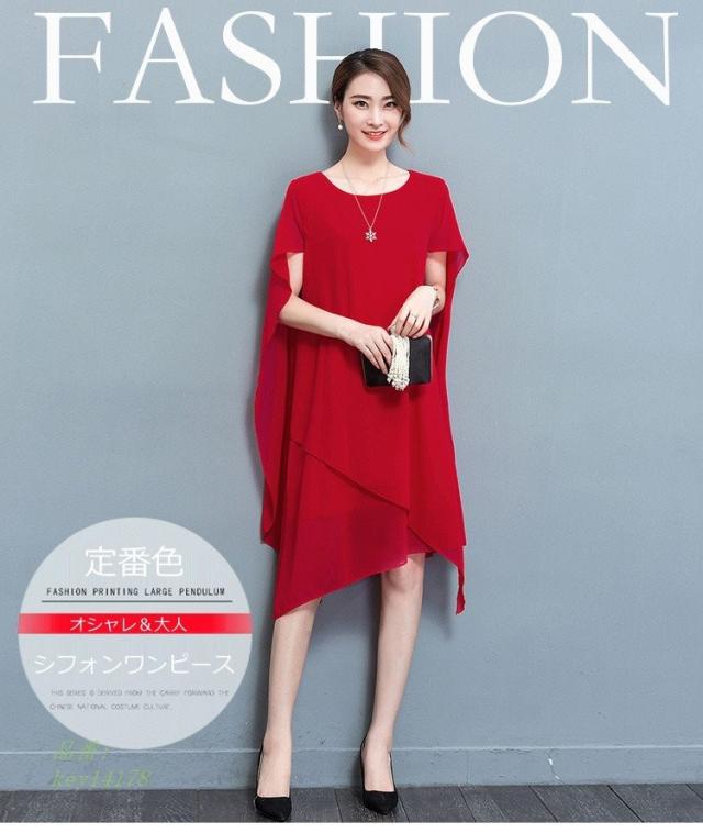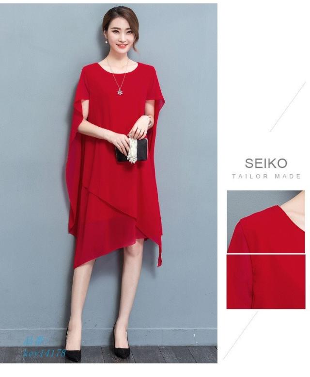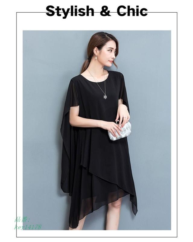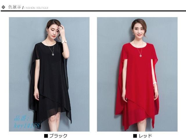 ワンピース レディース 春夏 膝丈ワンピースドレス ミドル丈 マント式ワンピ オシャレ 上品 体型カバー 大きいサイズ シフォンワンピース 新作 無地