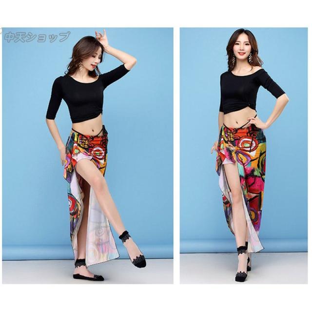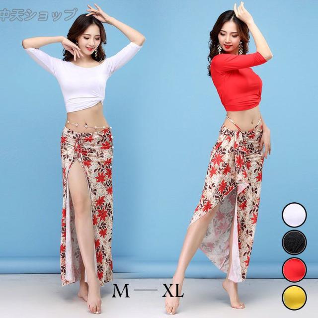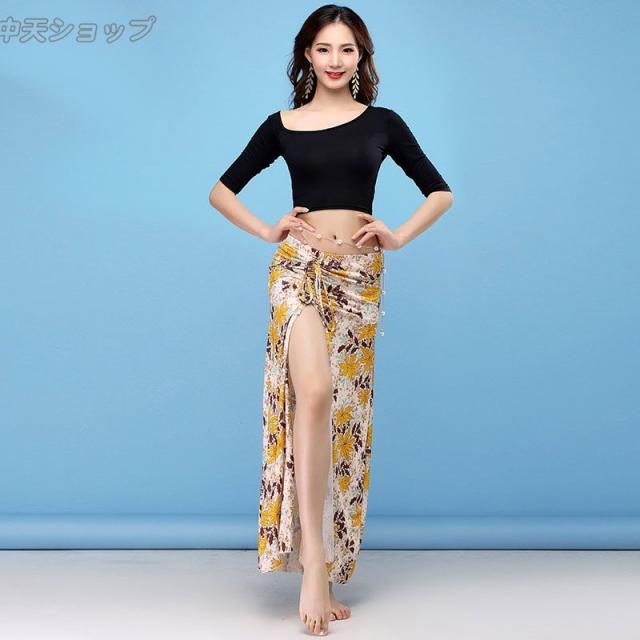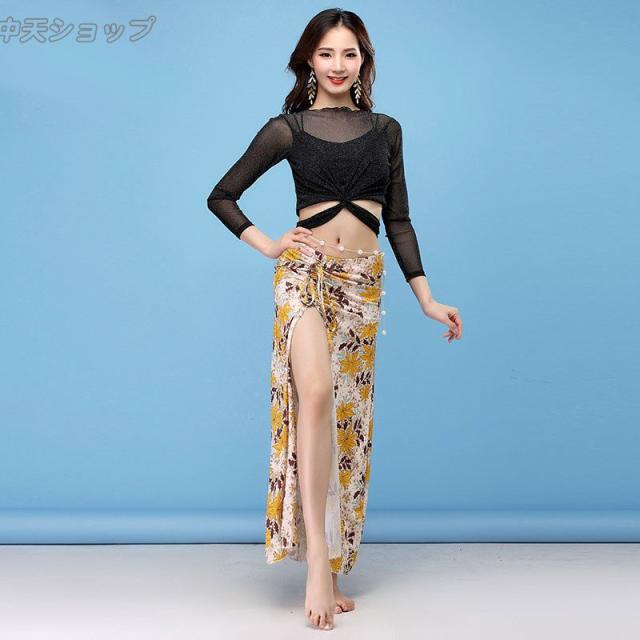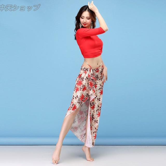 ダンスウェア 2点セット(トップス+スカート) ダンス演出 ベリーダンス衣装 セット セクシー ベリーダンス 練習ウエア 大人用 インドダンス衣装 20〜40代