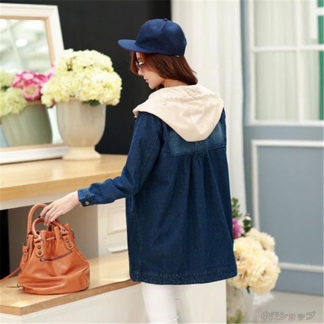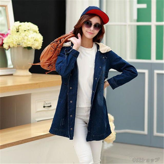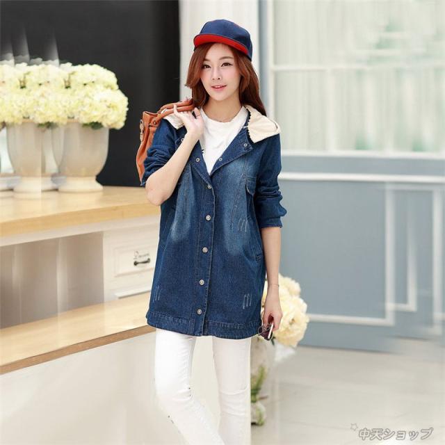デニムコートレディース 冬服 フード付き 長袖 大きいサイズデニム防寒コート お呼ばれ シンプル トップス 20代30代 着痩せ 暖かい お出かけ/通勤〜4XL