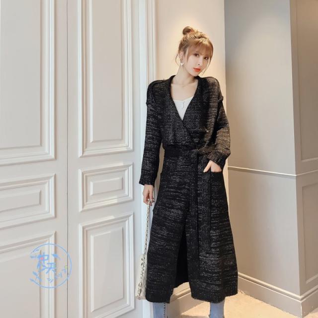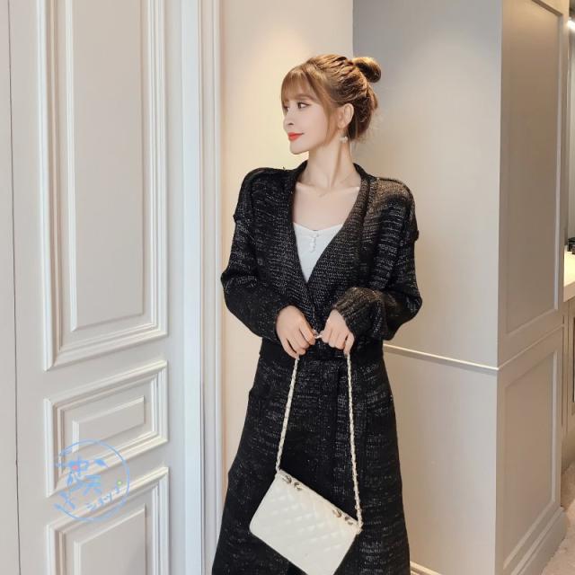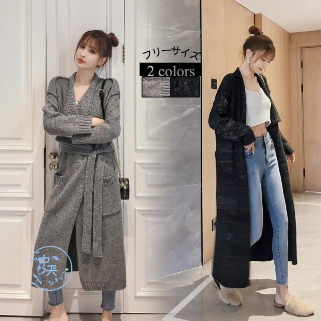 カーディガン ロング丈カーディガン セーター アウター ニット レディース 秋冬 トップス 長袖カーディガン ポケット付き リボン 着回し カジュアル 着痩せ