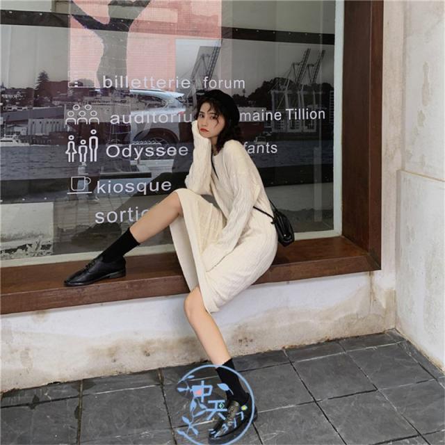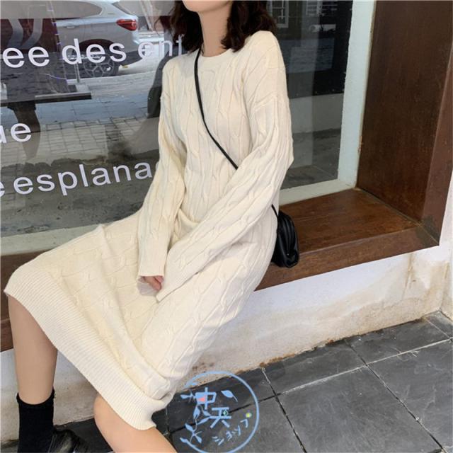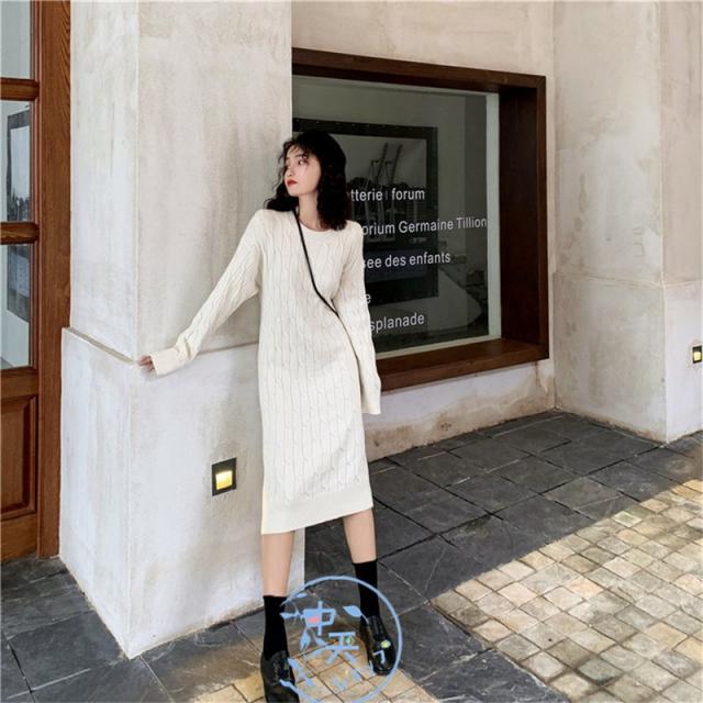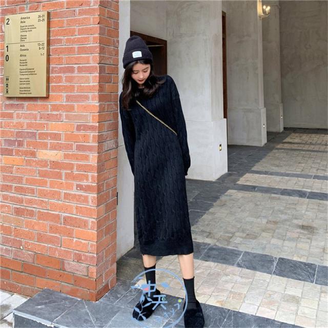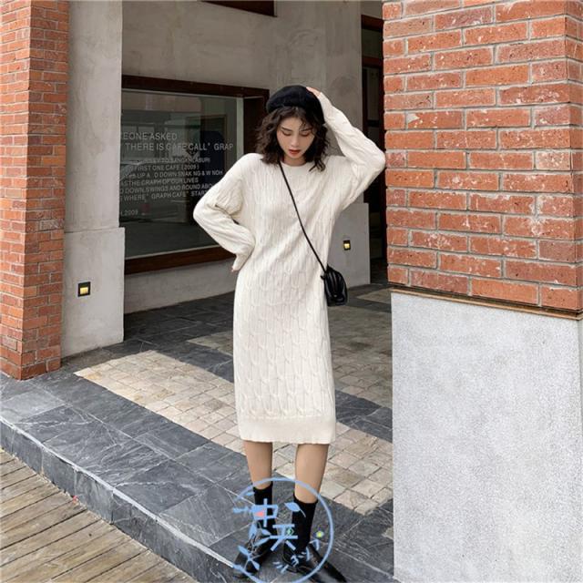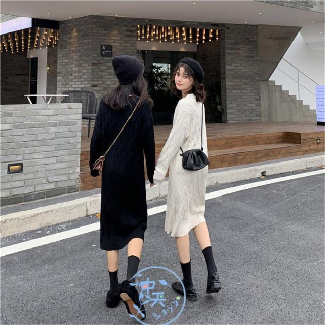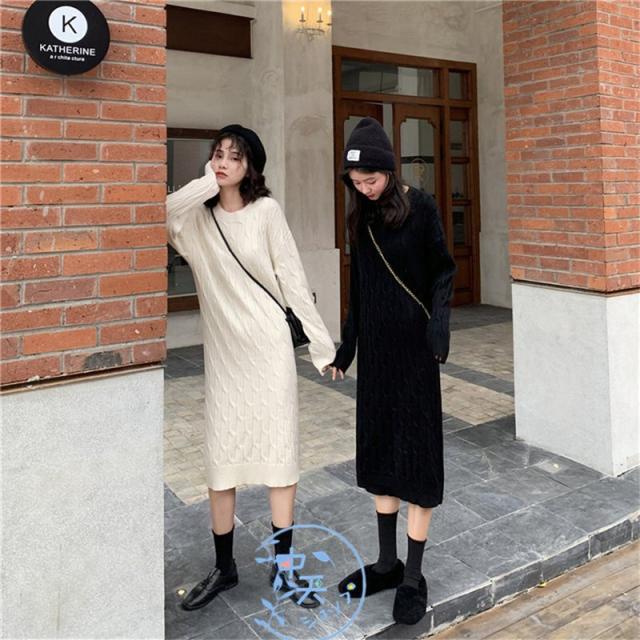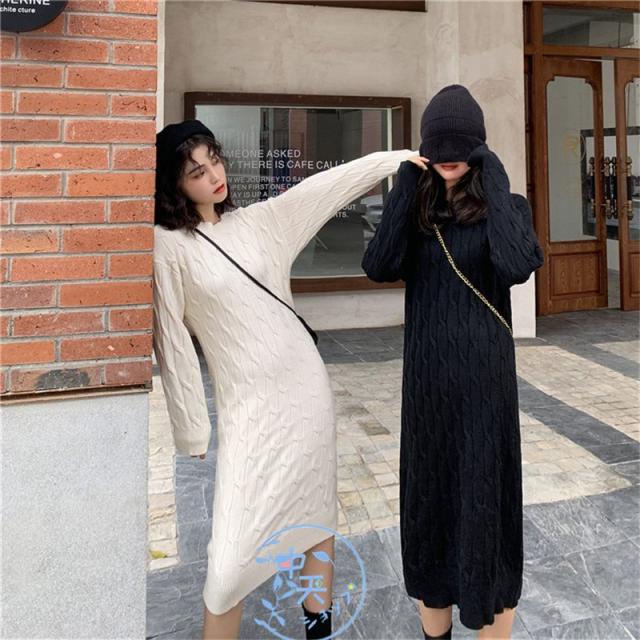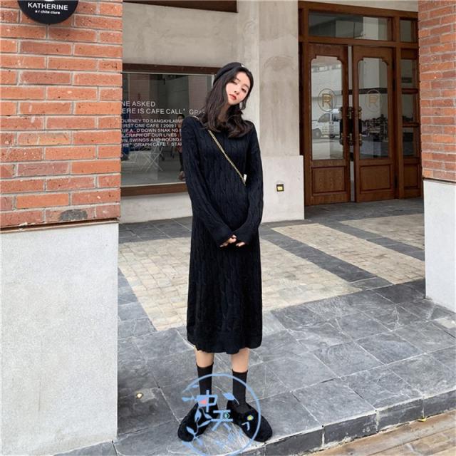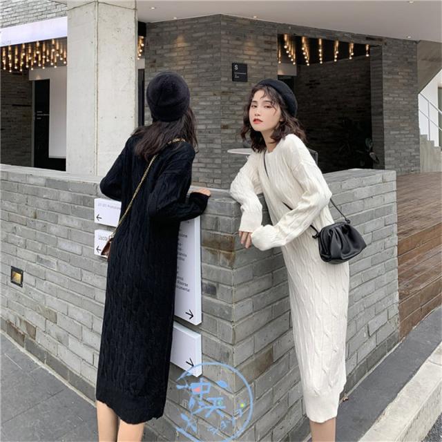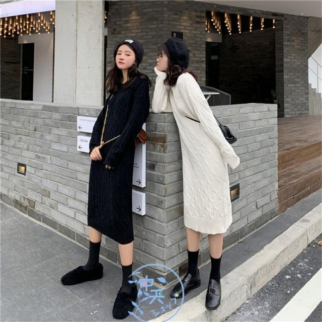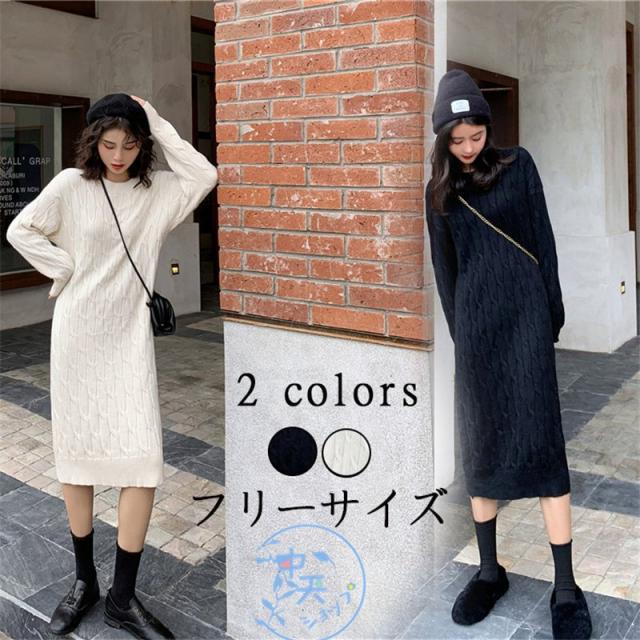 ニットワンピース レディース着痩せ 秋冬ワンピース韓国風ニットワンピース きれいめAラインマキシワン長袖ニットワンピース 20代〜40代冬服カジュアル黒/白