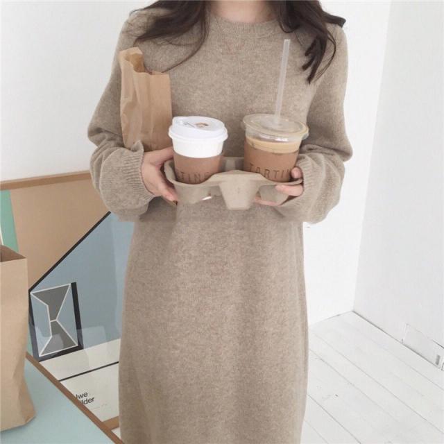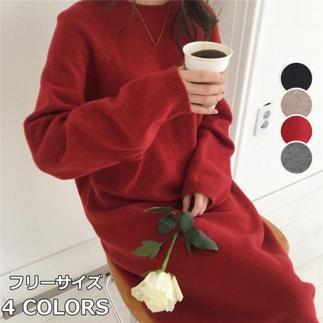 ニットワンピースオシャレレディースカジュアルニットワンピース 着痩せ 秋冬物マキシ丈長袖上品カジュアル お呼ばれニットワンピース