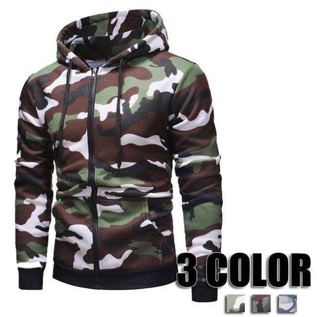 ジップアップパーカー 迷彩柄 スウェット メンズ 長袖 トップス パーカー スポーツ 秋服 冬服 カジュアル ジップアップパーカー メンズファッション 3色